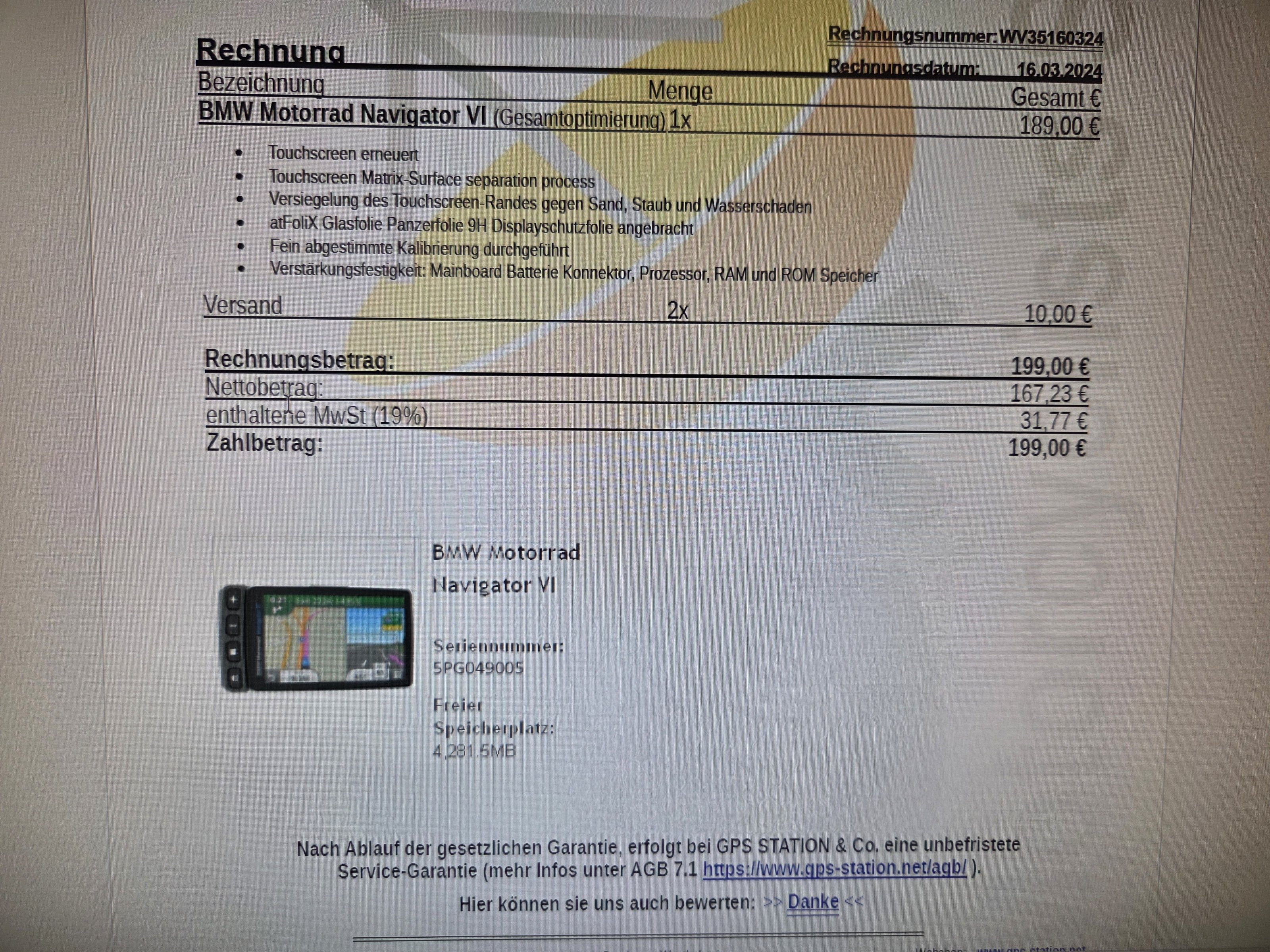 Lebenslange Kartenupdates von Garmin sind auch inclusive.