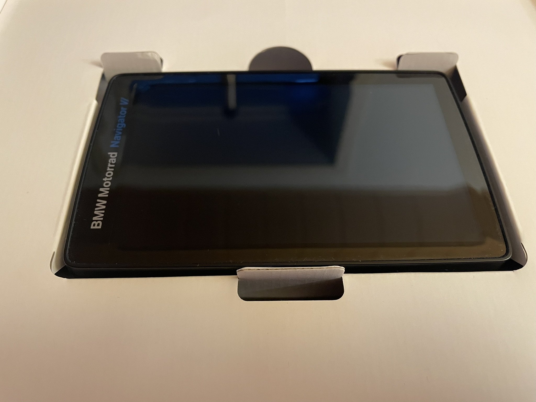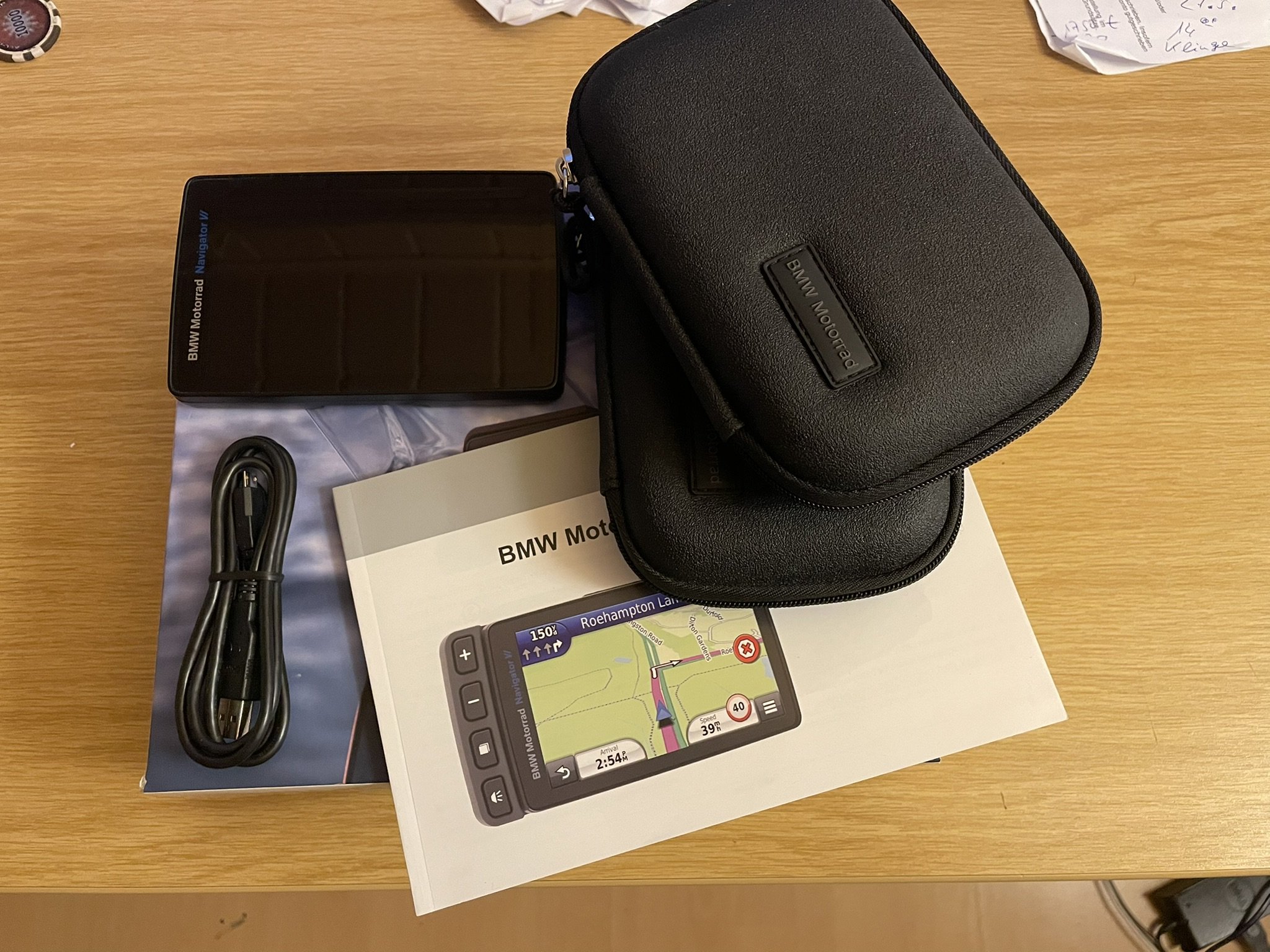 Das Gerät kommt mit der OVP, Ladekabel, Aufbewahrungstasche. Ich lege zusätzlich noch eine weitere BMW Tasche dazu, die liegt hier noch rum.