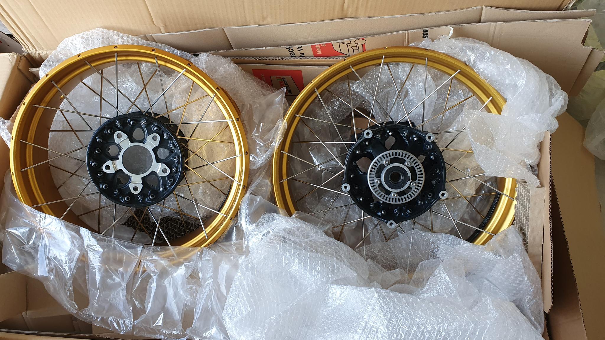 zum Verkauf stehen ein Satz goldene BMW Kreuzspeichenfelgen.