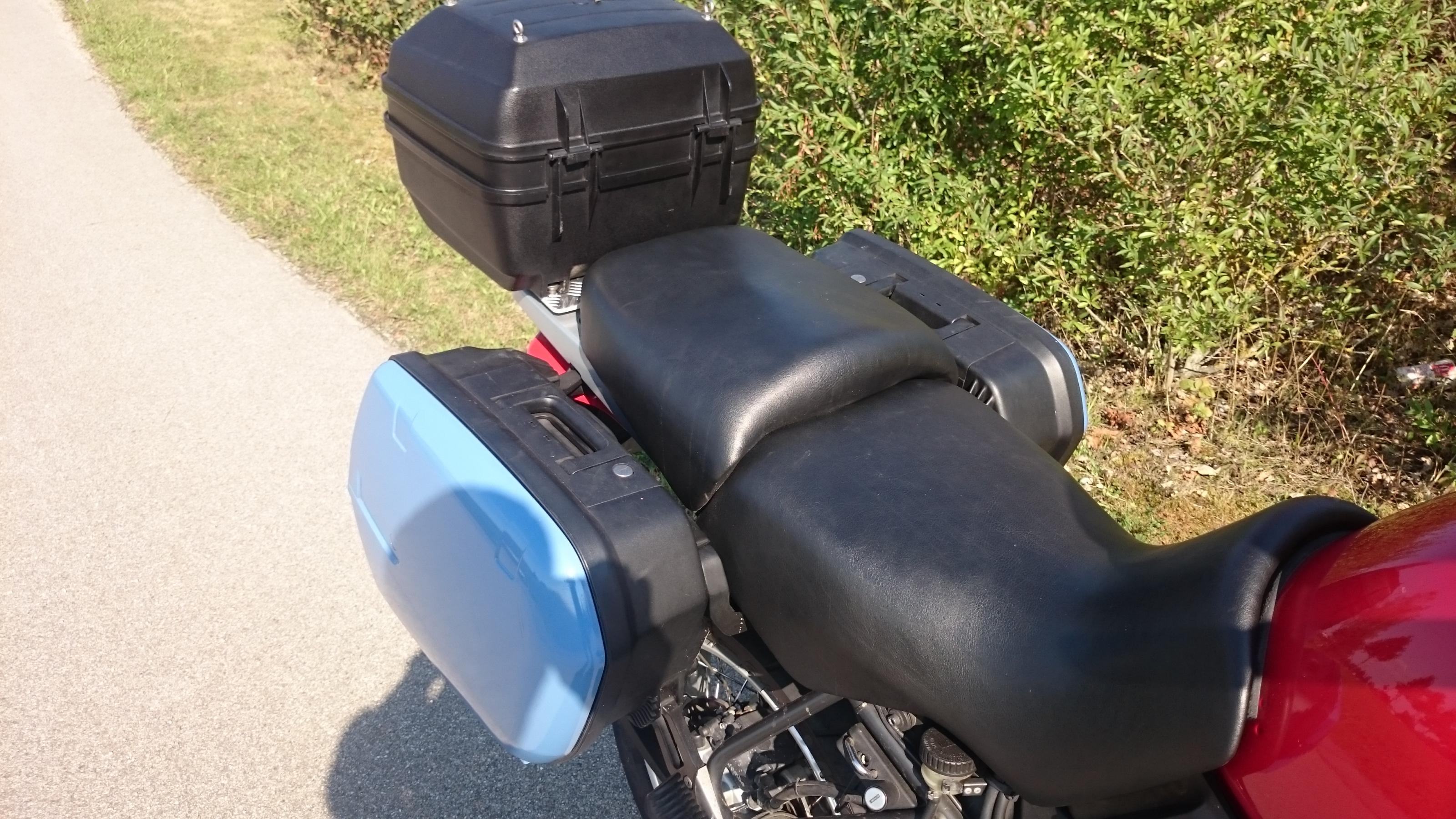 Zubehör: 2xKoffer mit kleinen Deckeln (sehr praktisch, da die GS daher mit Koffern nicht breiter als ohne Koffer ist), 2xTopcase (unterschiedliche Größe), Topcaseträger, mechanischer Tempomat, K&N Lufi, Zylinderschutz BMW (klein), Touratec Blinkerrelais mit geänderter Abschaltung, Öleinfülldeckel mit Sicherung, 2xReparaturanleitung (BMW, Zubehör), Kleinzeug