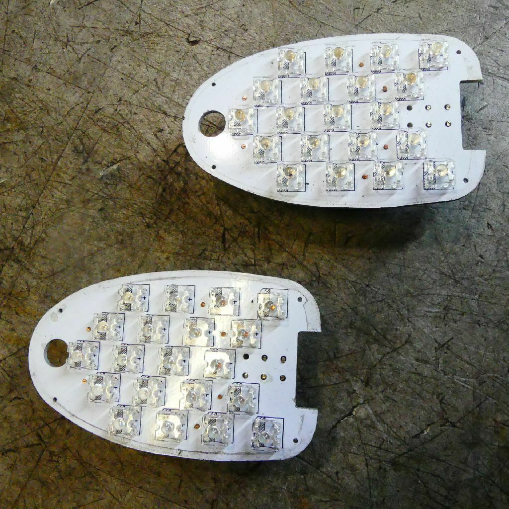 Nebenbei bezweifle ich dass die hier verlinkten LED-Einsätze zulässig sind: Es wird die originale Streuscheibe weiter genutzt, auf dieser ist nichts von LED vermerkt. Weiterhin dürfen (lt. Gesetzgeber, hier StVZO) LED-Leuchten an Kfz nicht zerstörungsfrei zu zerlegen und/oder reparabel sein. Damit der Bastler nicht am heimischen Küchentisch mit Opas Lötkolben neue/andere LEDs von Conrad oder Reichelt hinein brutzelt...