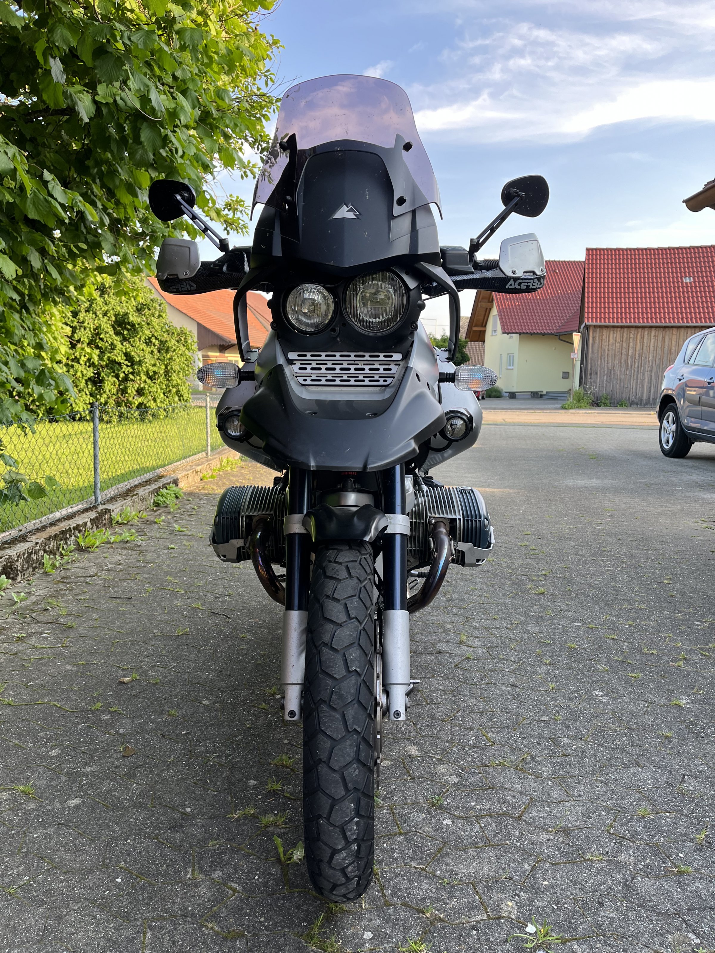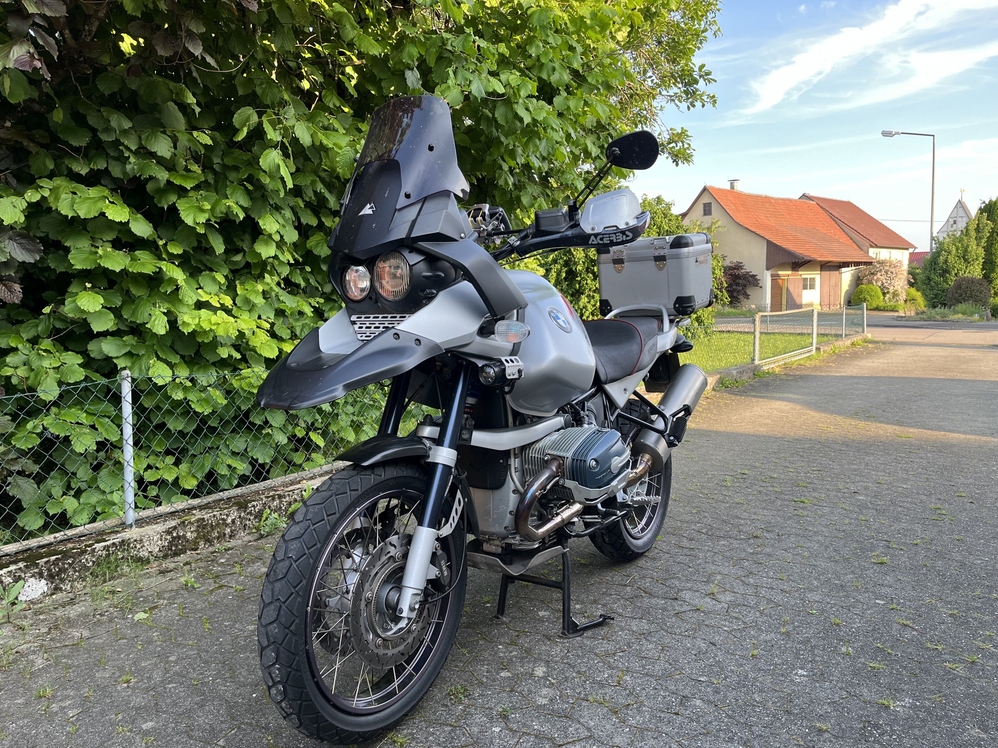 Sie ist aus 2003 ,hat neu TÜV und neue Reifen drauf. Das anfällige ABS Modul wurde ausgebaut ( eingetragen). Letztes Jahr großer Kundendienst gemacht. Sie läuft mit dem SR Auspuff richtig gut und hat einen kernigen Sound.