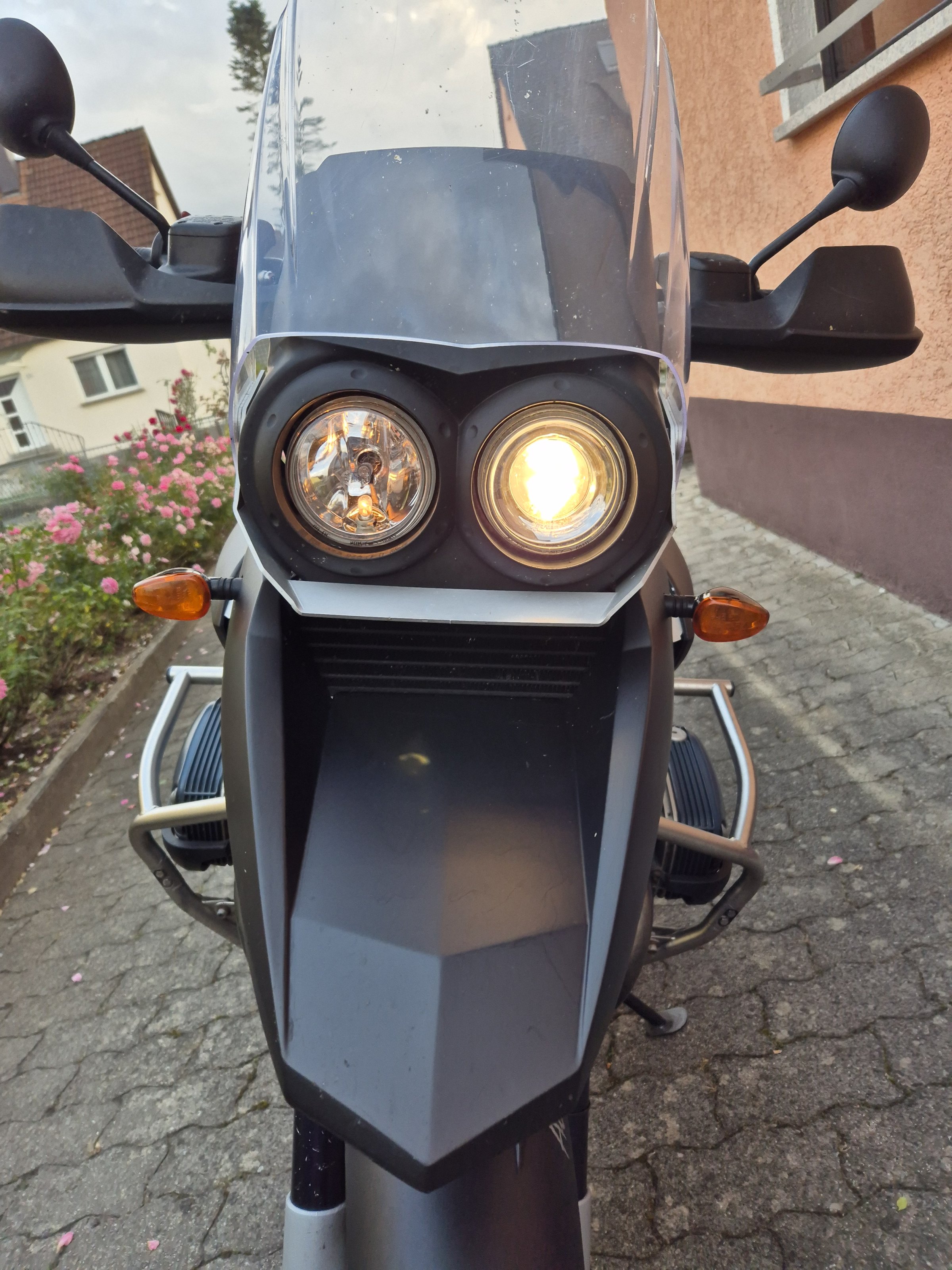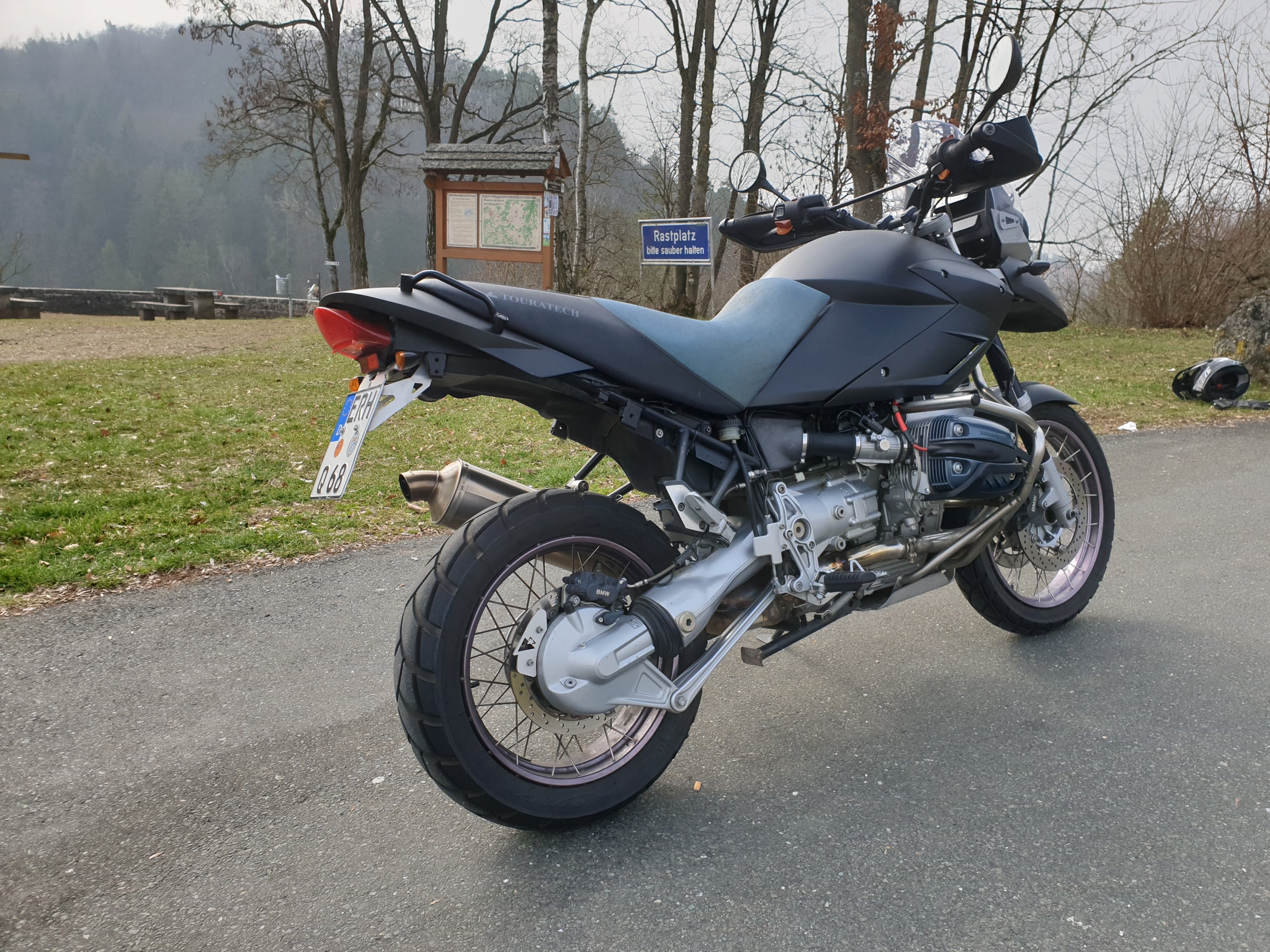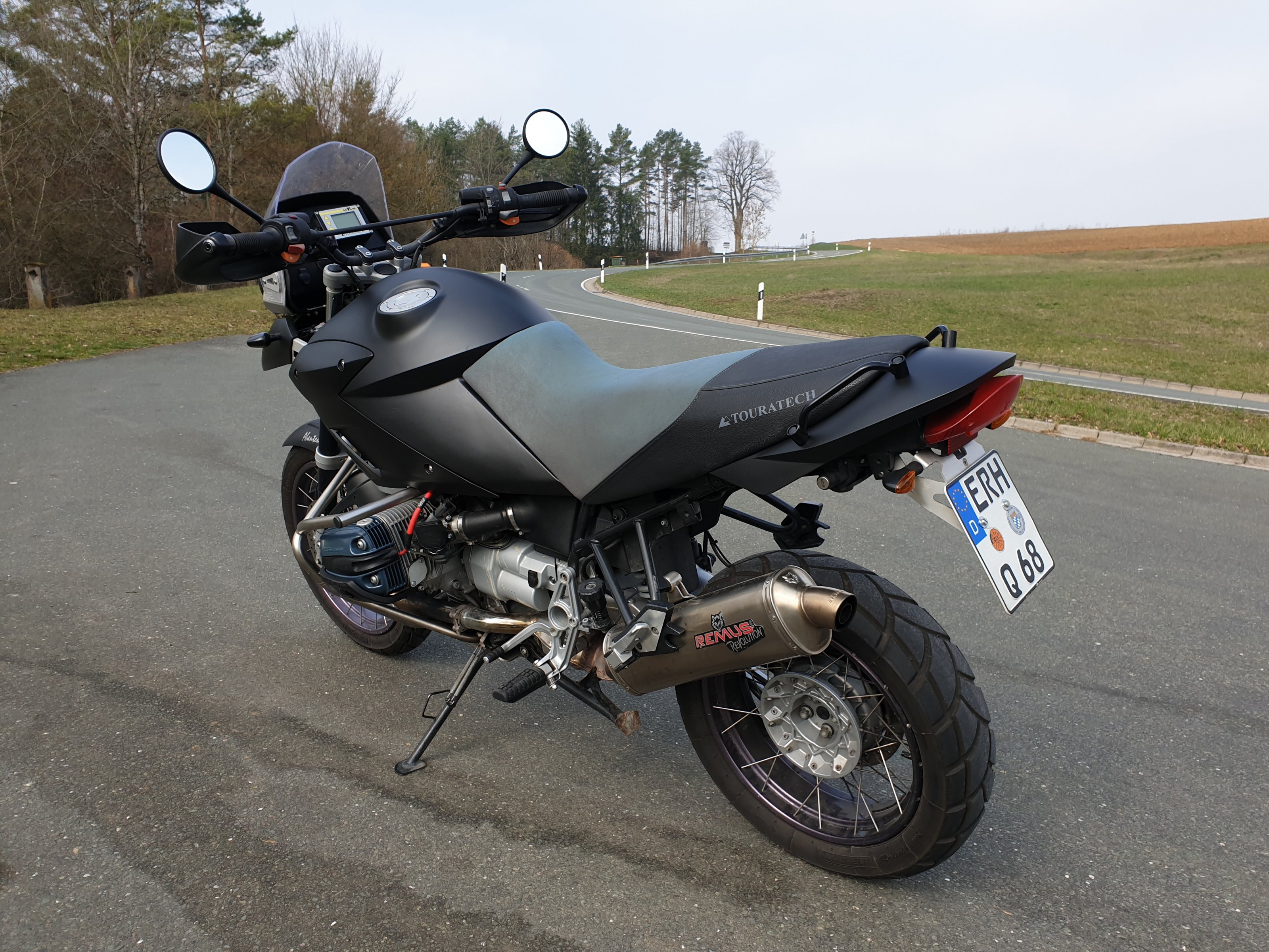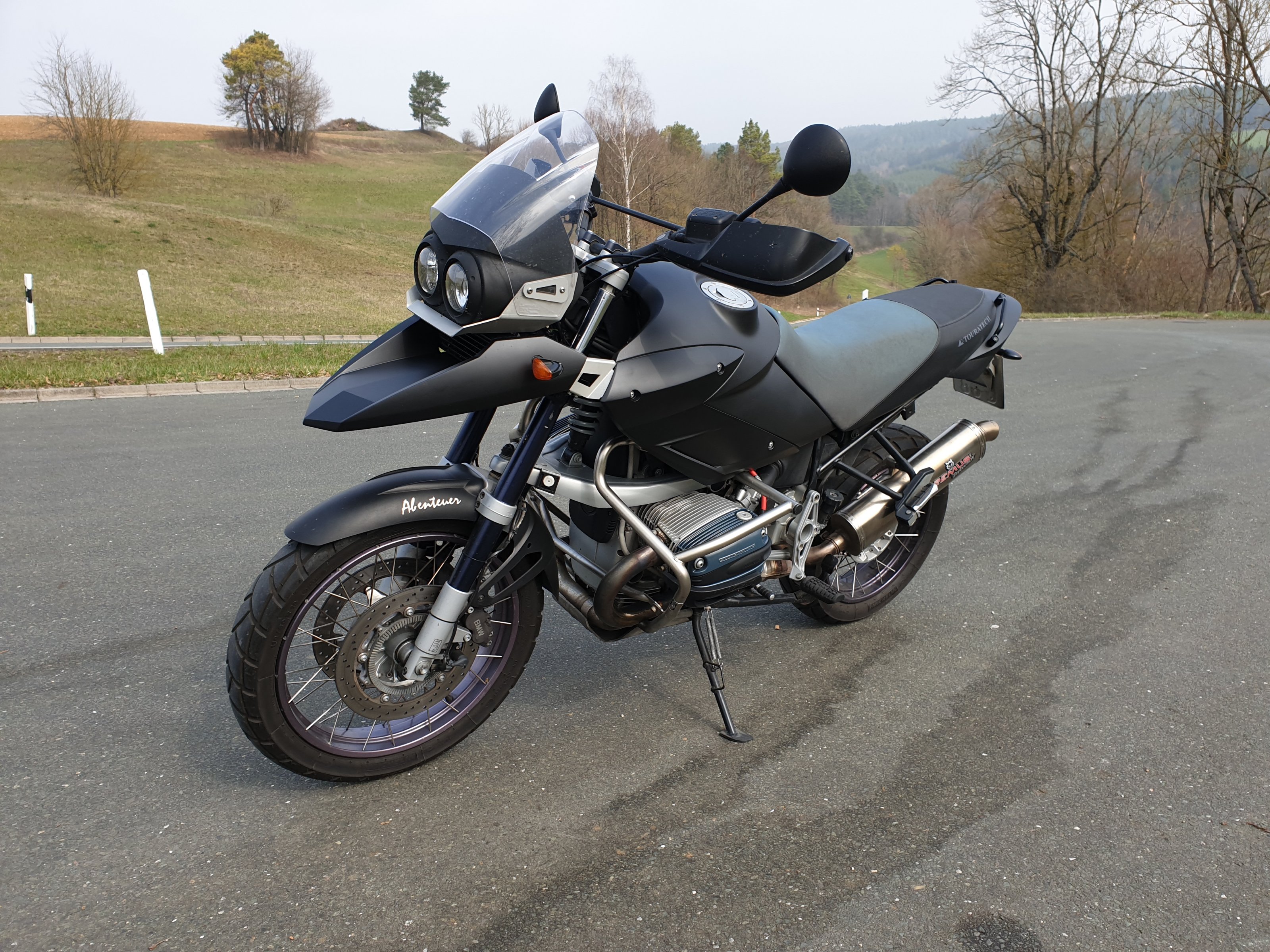 Touratech-Teile: Windschutzscheibe, Xenon Licht, IMO 100 R Tachoeinheit, Cockpit, Schnabel vorne, Lenkanschlag-Schutz, Windschutzscheibe, Kunststofftank, Sitzbank, Heck, Rücklicht - alles eingetragen!