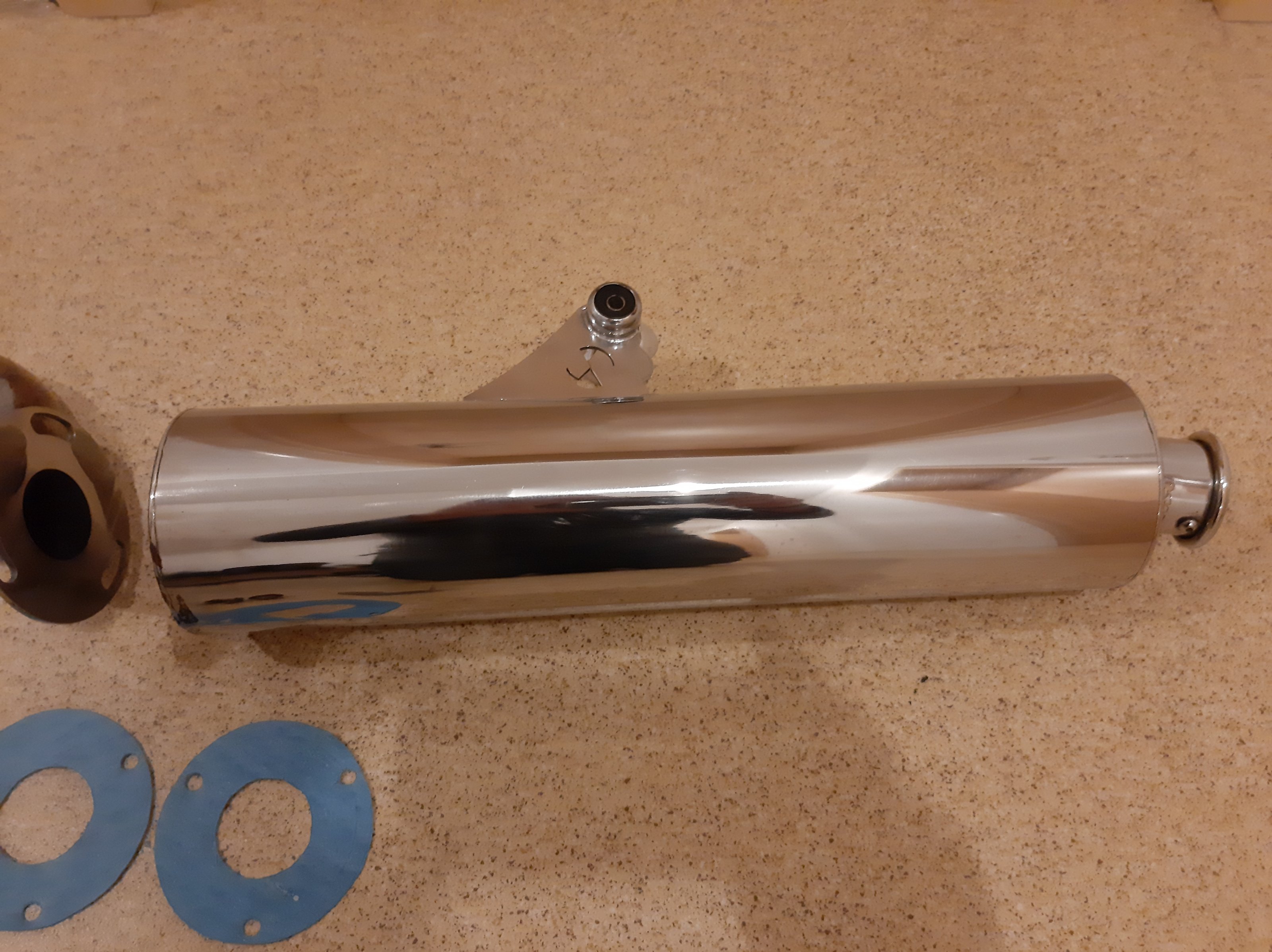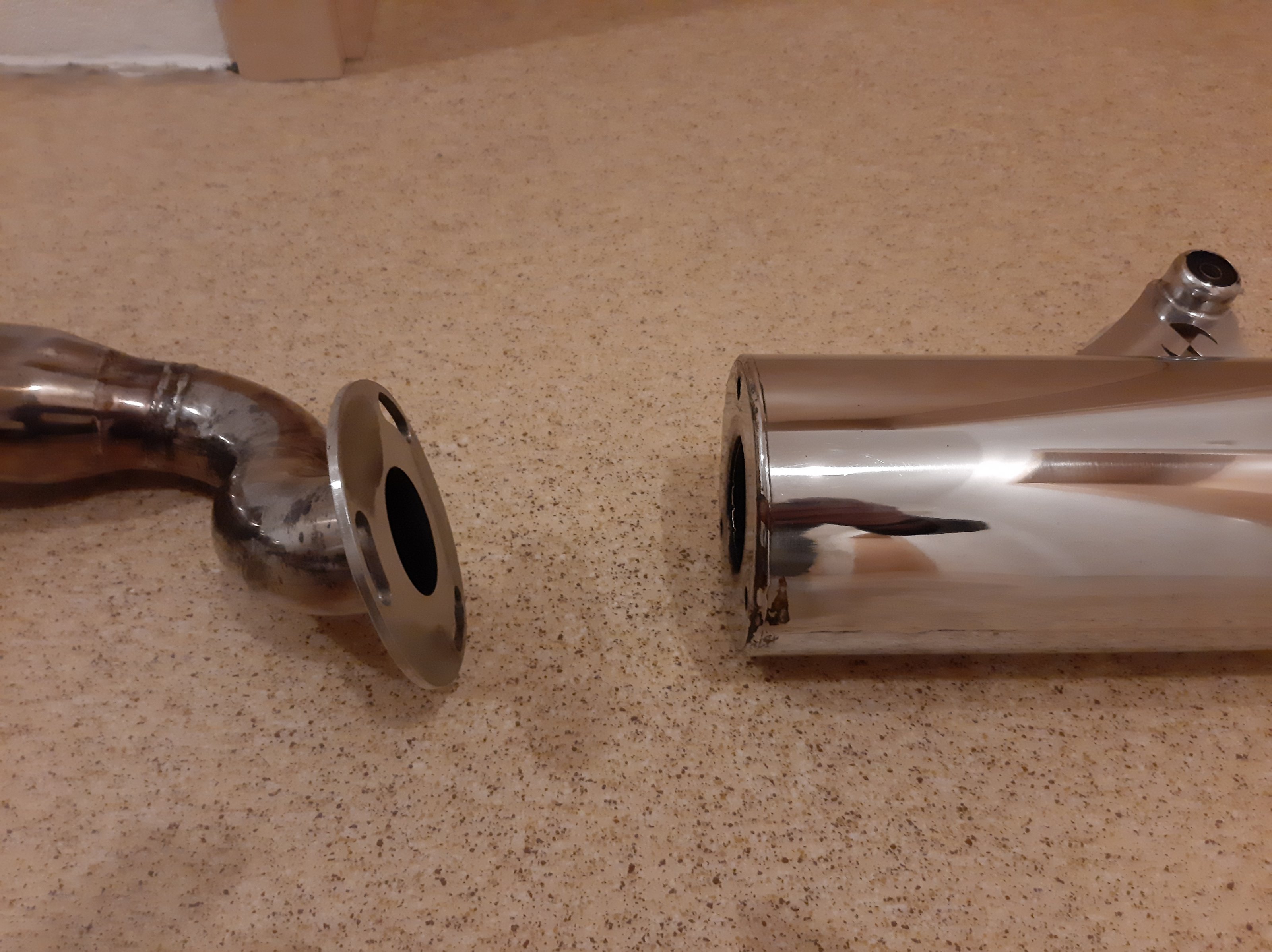 Der db-Killer wurde noch nie entfernt. Der Schweißpunkt an der Sicherungsschraube ist noch vorhanden. Der Hauptständeranschlag ist ebenfalls vorhanden.
