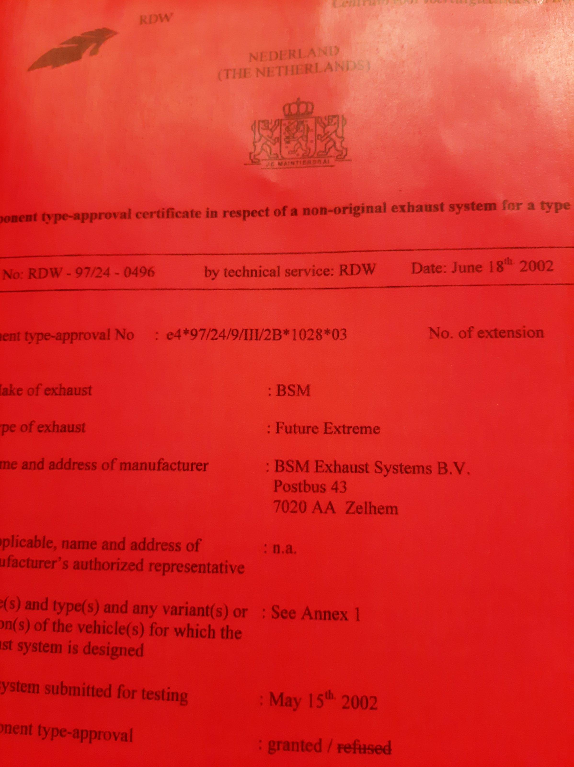 Es gibt auch eine Bestätigung von der Fa.Hattech, dass es sich um eine orginale Anlage der Firma handelt.