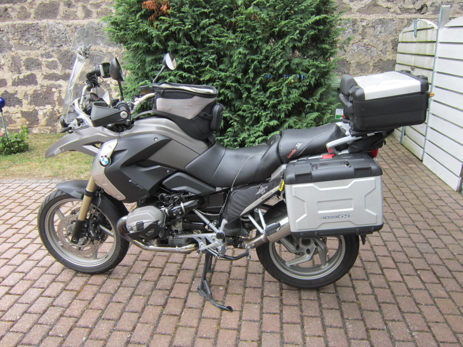 Die Maschine wurde nur bei schönem Wetter gefahren (nicht im Winter und bei Salz) und ist Top gepflegt Der BMW-Typ 0450 ist der letzte luftgekühlte GS-Boxer mit dem legendären DOHC-Motor aus der HP2. Da nur zweieinhalb Jahre in Produktion sicherlich ein Motorrad mit Wertzuwachs. Farbe: Ostragrau-Metallic Matt ESA--Fahrwerk Ein Wechsel der Dämpferabstimmung -Normal,Sport,Comfort- ist durch einfaches Umschalten per Knopfdruck auch während der Fahrt möglich Bordcomputer Griffheizung 2 Stufen Auspuff verchromt Zylinderschutz Unterfahrschutz Orginal BMW LED Rücklicht+Blinker Handschutz Kofferhalter re,li Trägerplatte für Vario Topcase Reifen vorne+hinten Metzeler Tourace next, gewechselt bei 40500 km ABS--- Antiblockiersystem ASC---Automatic Stability Control . (Automatische Stabilitätskontrolle) RDC---Reifendruckkontrolle verfügt über eine aktive Warnfunktion USB Lader sowie 12Volt Steckdose am Bügel montiert Aus zweiter Hand Unfallfrei Aktuell ca.40900 km. Alle Orginal Teile sind selbstverständlich ohne Beschädigung vorhanden Zusätzliches Zubehör kann erworben werden Komplette Vario Koffer m. Rückenpolster 600€ Tom Tom Raider 410 mit Halter 200€ Komfort Baehr Sitzbank mit Sozius beheizt 300€ Tankrucksack groß BMW 80€ Touratech Seitenständer Auflage 20€ Touratech Scheibenerhöhung 45€ Hecktasche v. Held 25€ Komplett mit dem Zubehör würde ich die BMW für 10400,00€ abgeben Maschine ist angemeldet und wird regelmäßig noch gefahren gegen Hinterlegung des Kaufpreises kann gerne eine Probegefahren gemacht werden. Bei Fragen einfach melden