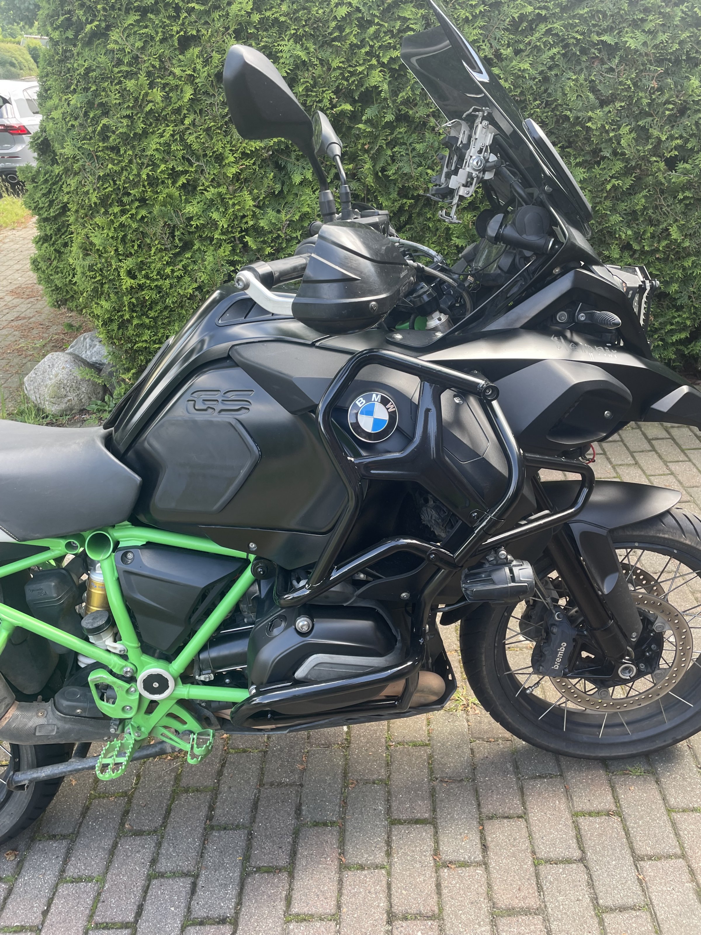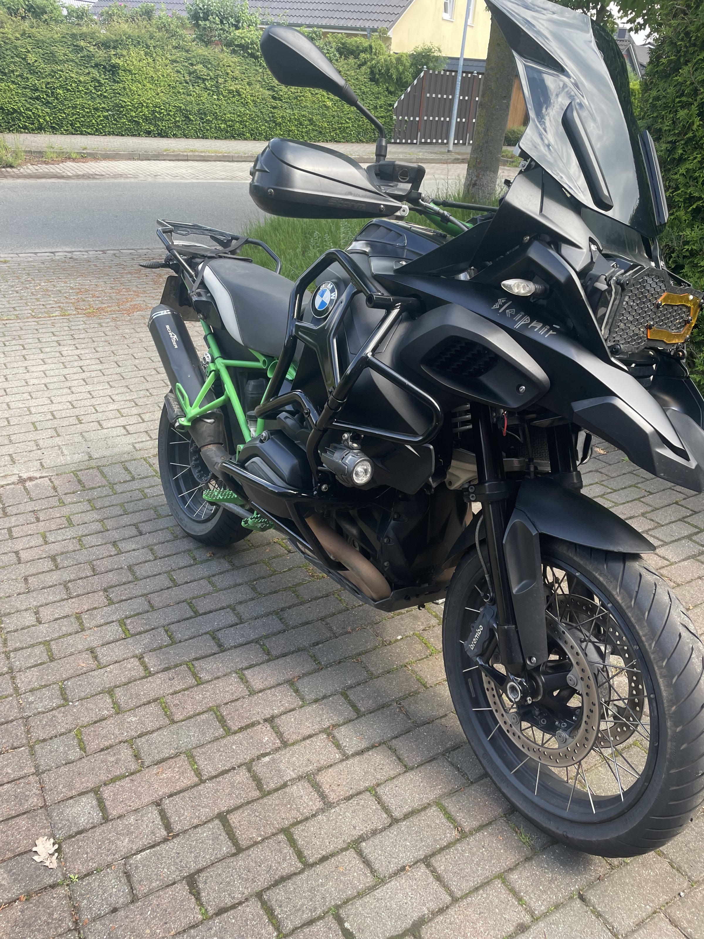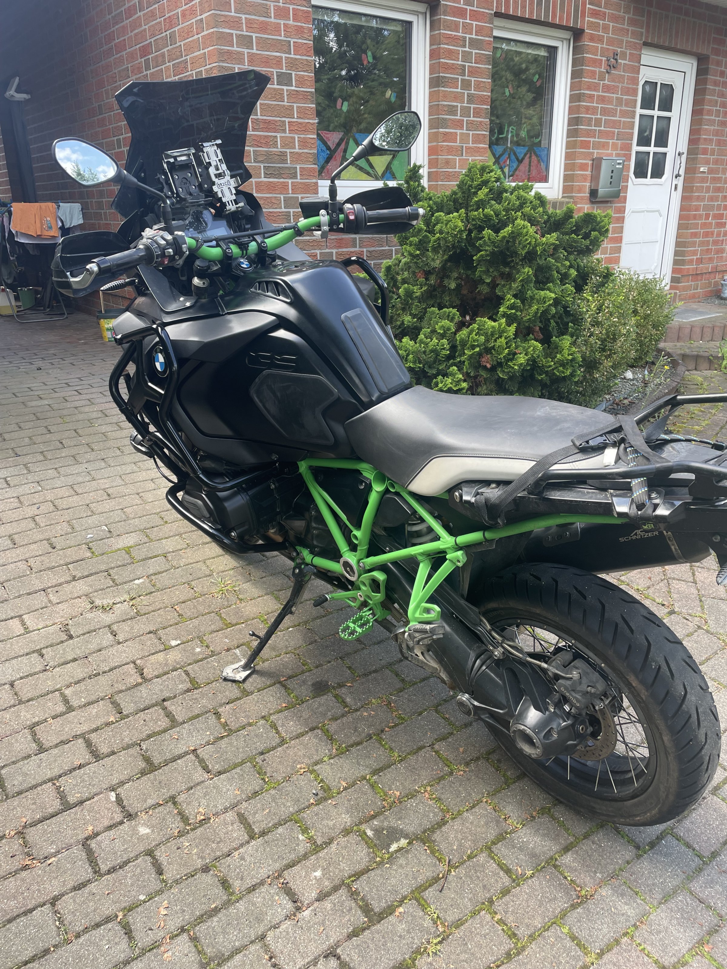 Es ist ein Topcase Halter verbaut. Desweiteren wurden verbaut Barkbuster Handschützer, Sturzbügel Erweiterung von Touratech, eine Doppel USB Steckdose und ein AC Schnitzer Endschaldämpfer. Hat Enduro Pro und Bordcomputer Pro Desweiteren Heizgriffe.