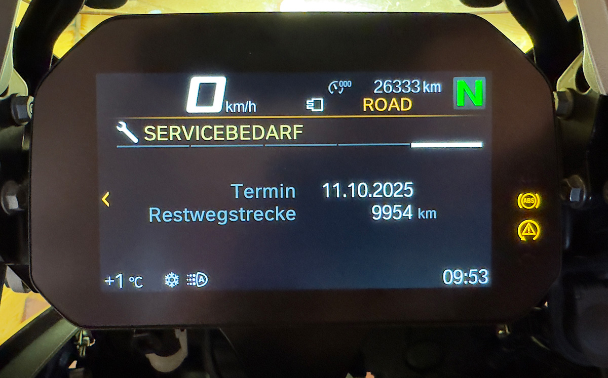 Seither nicht gefahren also 9956 km bis zum nächsten Kundendienst.