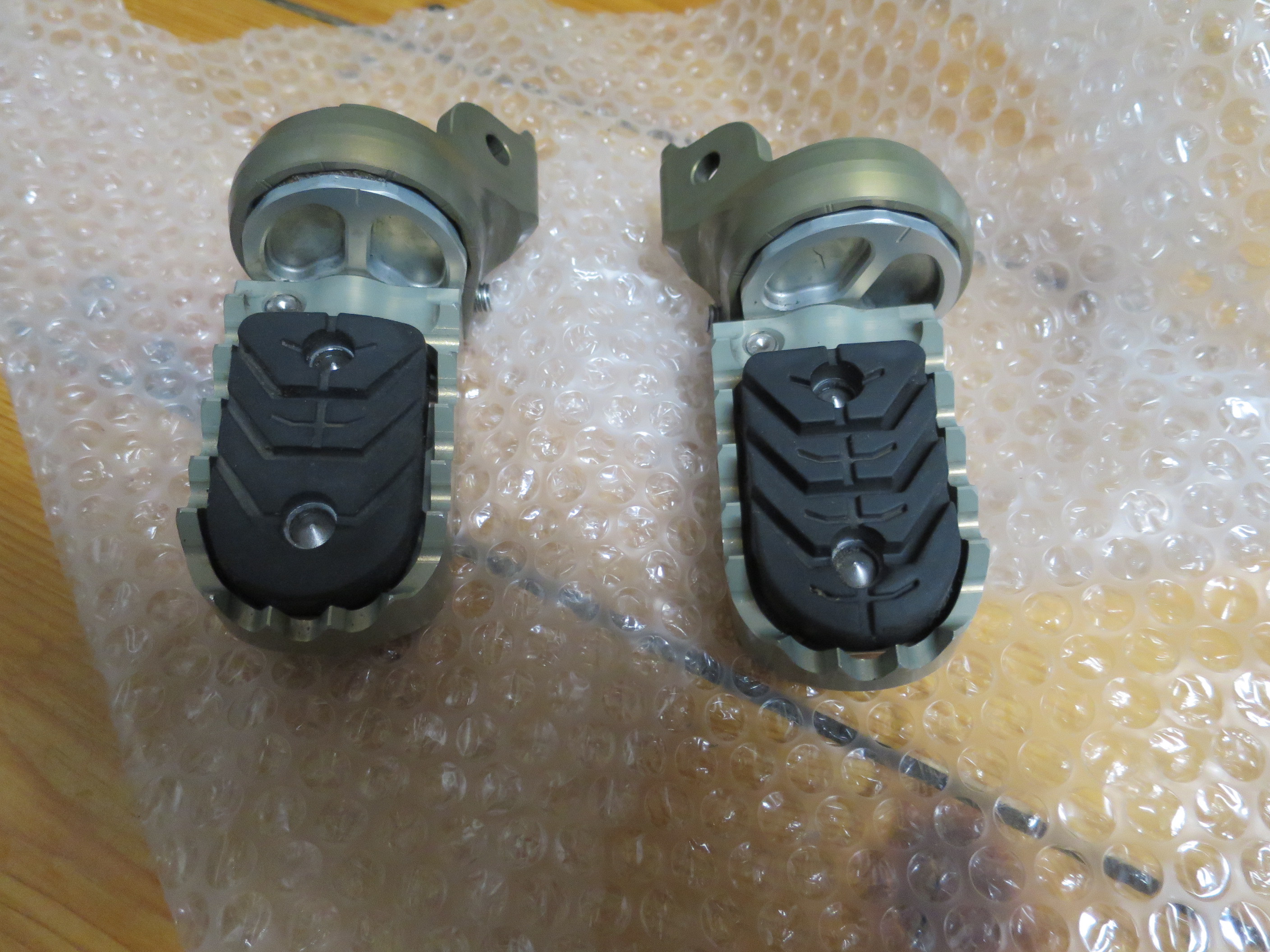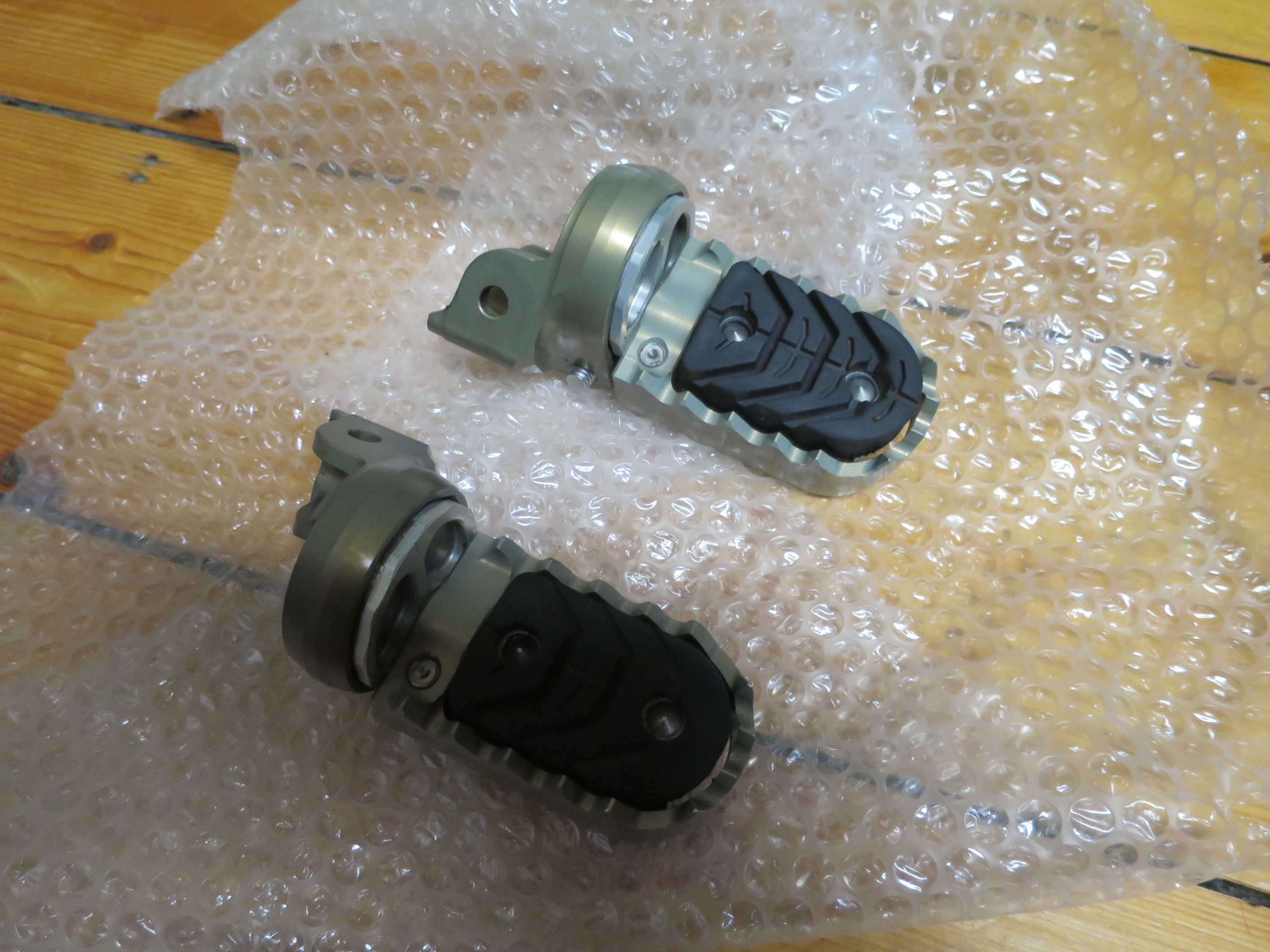 Inkl. ABE passend für BMW R1200 GS und Adventure luftgekühlt. Linke Fußraste hat leichte Schleifspuren, rechts neuwertig. Kann ggf. auch an andere Motorräder passen.