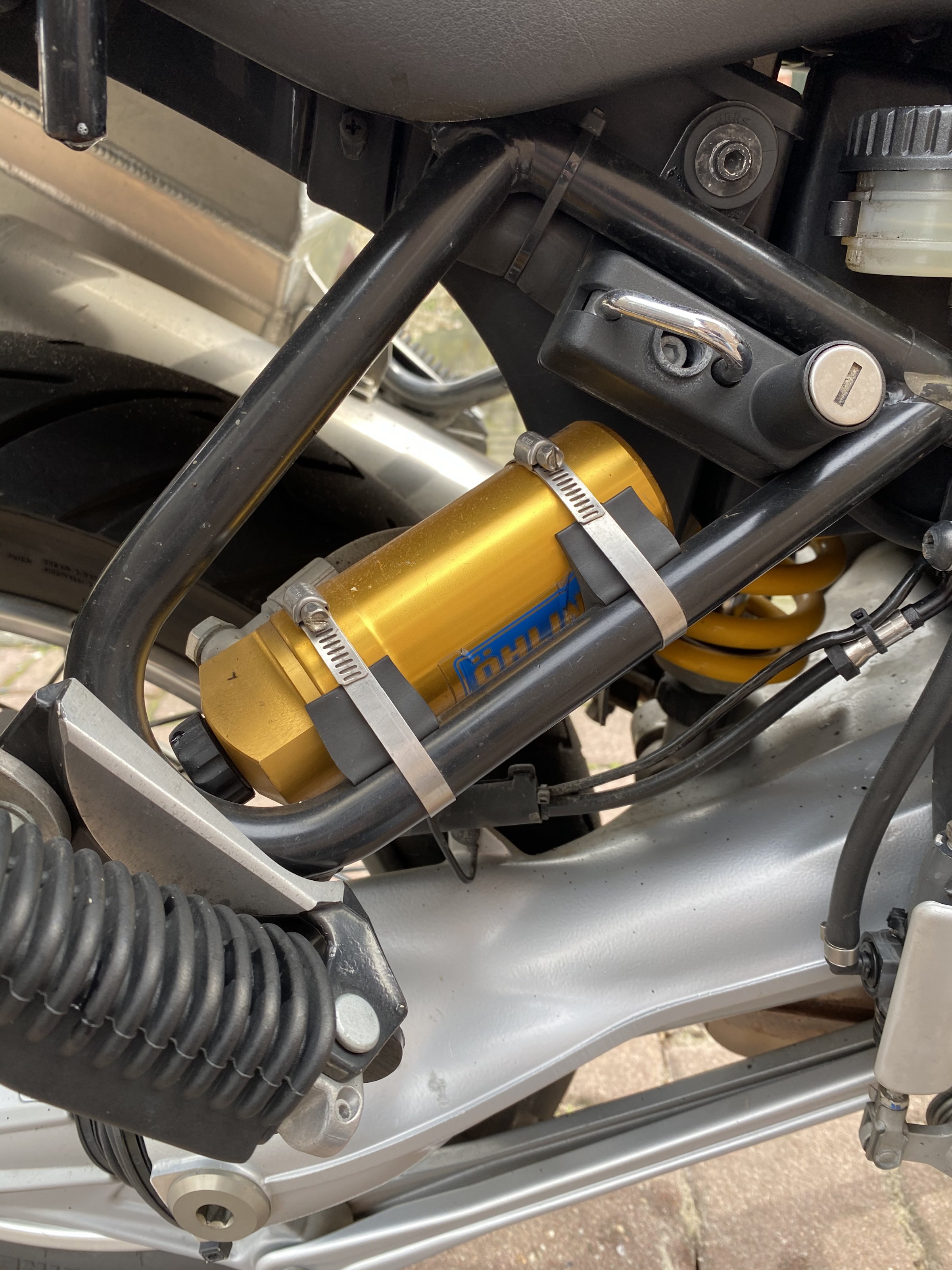 - ein Öhlins Fahrwerk (vorne mit Zugstufenverstellung / hinten mit Zug und Druckstufenverstellung)