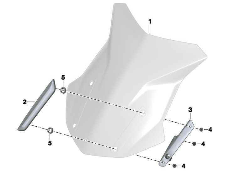 Bestehend aus Windschild hoch (46638557868) / Blende Windschild links und rechts (46638556013/4) / Windschildhalter links und rechts (46638556015/6) / Innentorx Schrauben (18518531936) / Tüllen (46638557871) ... NP: 273,58 Euro