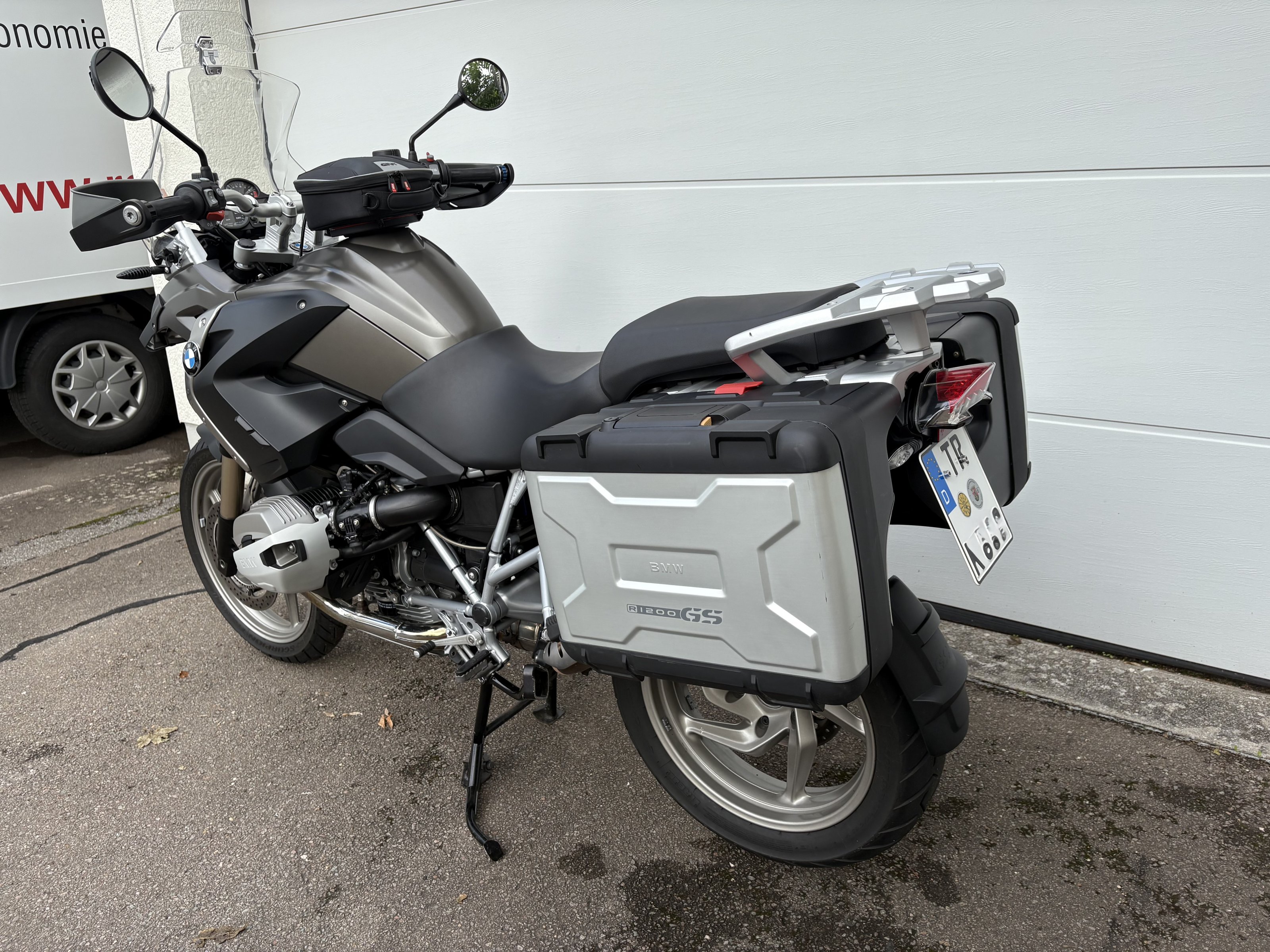 Als Zubehör dabei sind die originalen BMW Variokoffer (Schlösser gleichschließend) ein kleiner praktischer Tankrucksack sowie ein Spoileraufsatz für das Windschild (sehr effektiv) von Wunderlich.