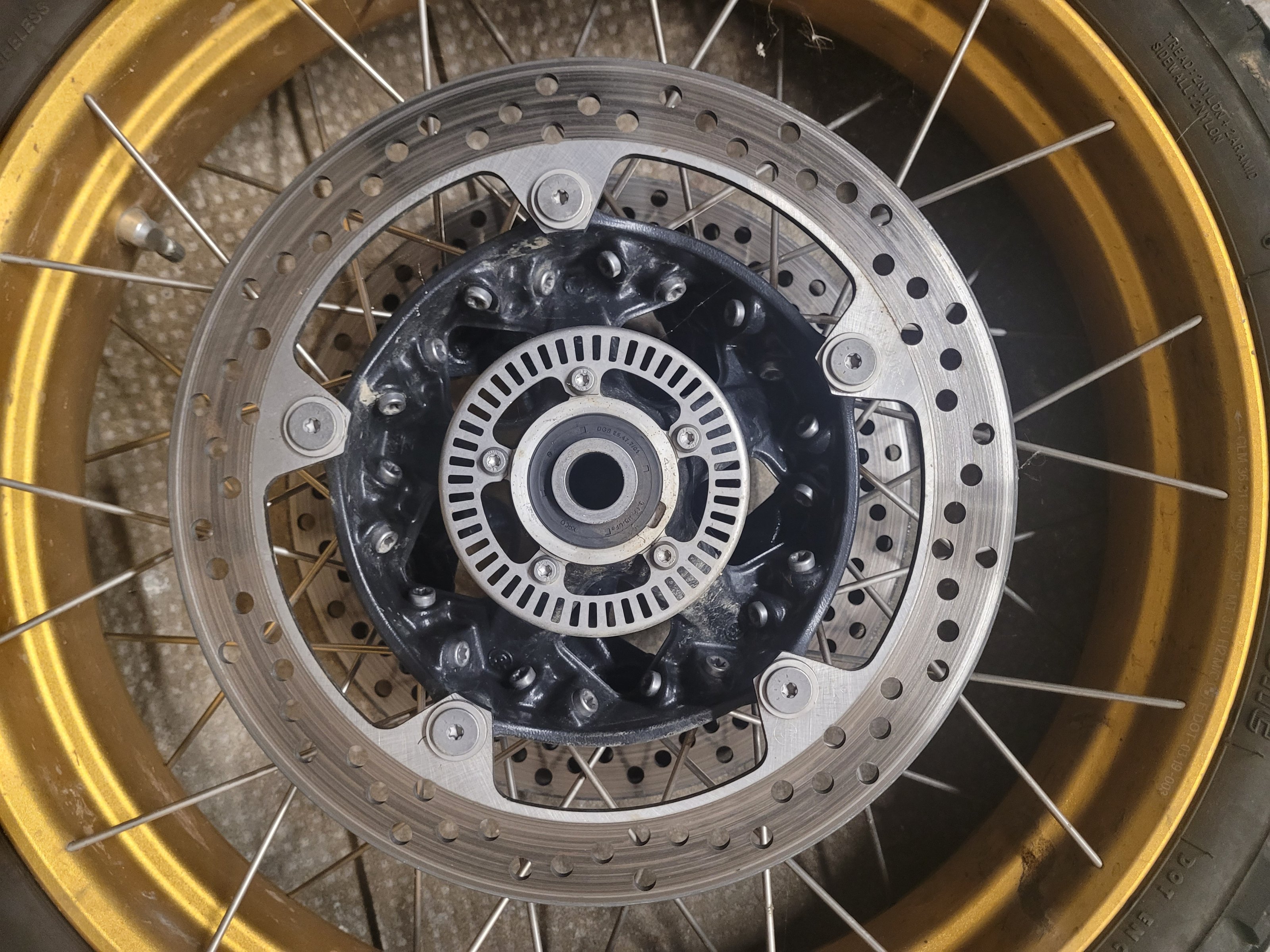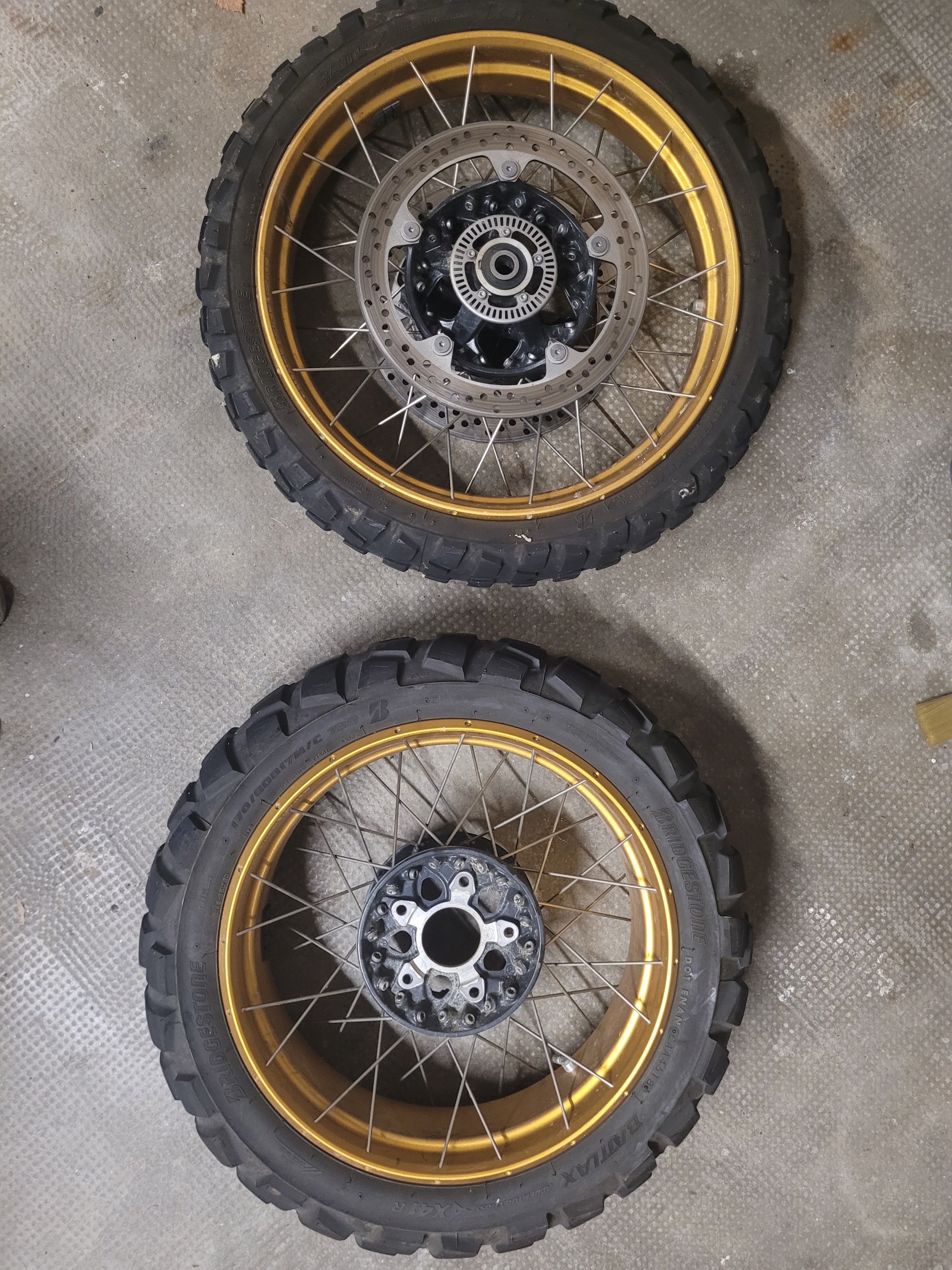 Ich verkaufe hier sehr gut erhaltene Drahtspeichenräder für die BMW R1250 GS oder auch 1200 er GS in Gold mit Bremsscheiben.