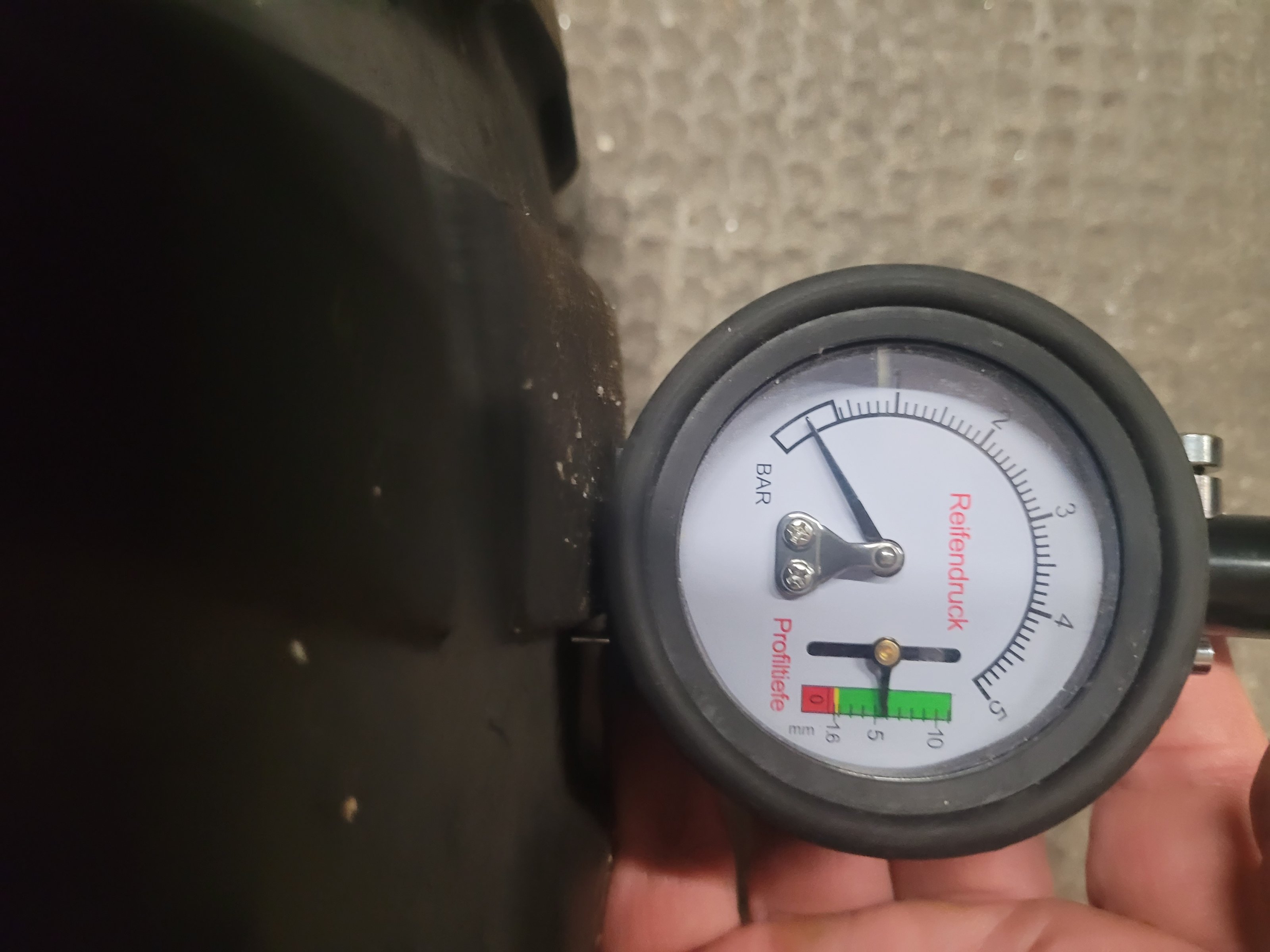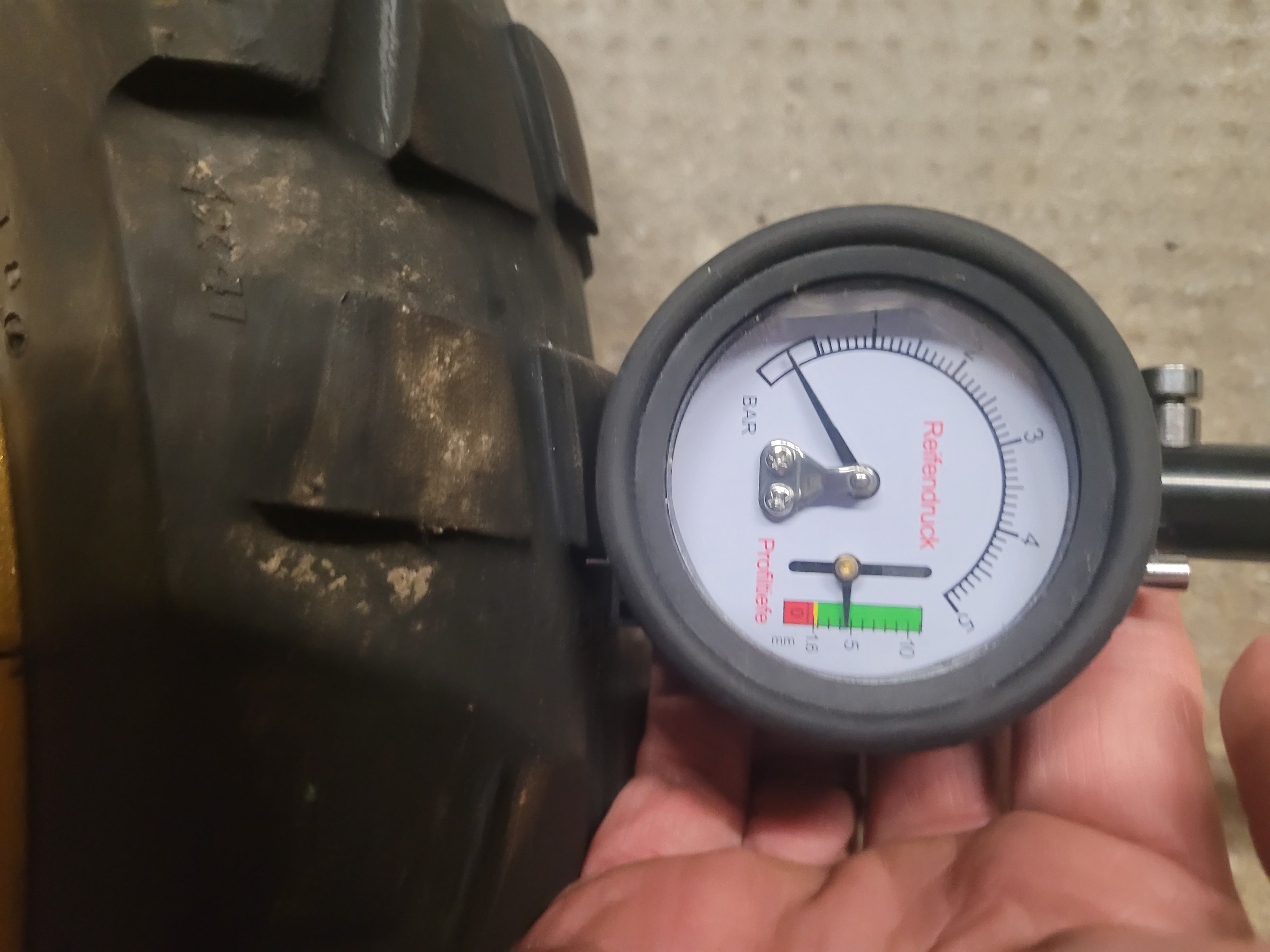 Die Felgen sind bereift (ca. 5mm) Resttiefe.