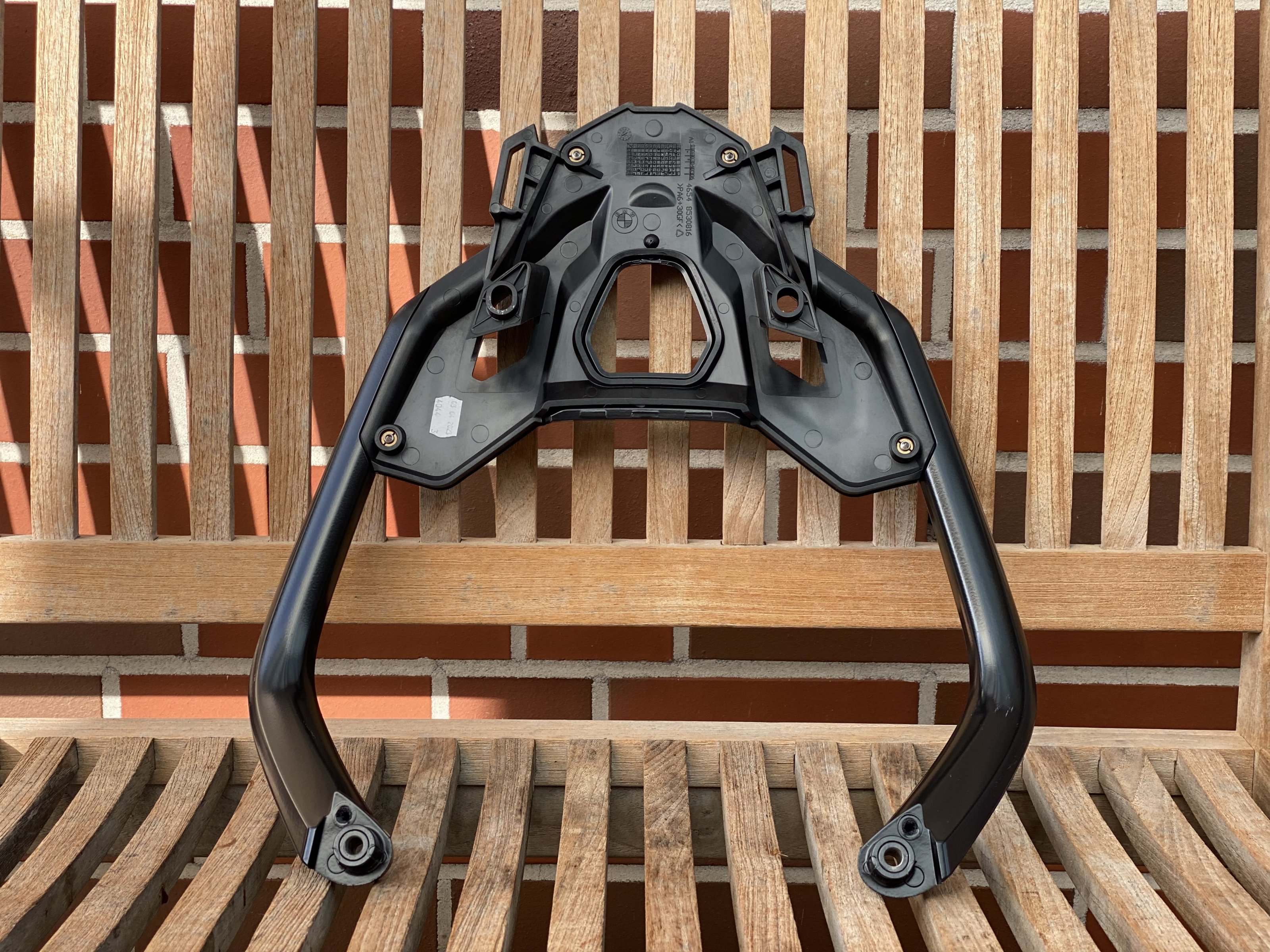 Das Teil hat die Teilenummer (46548-403994 oder -536995 / 46548-530816) und nennt sich bei BMW „Haltegriff hinten“ mit „Gepäckbrücke Unterteil“ (s. Foto). Neupreis zusammen ca. 370€, bzw. bei Leebmann24 ca. 340,00€.
