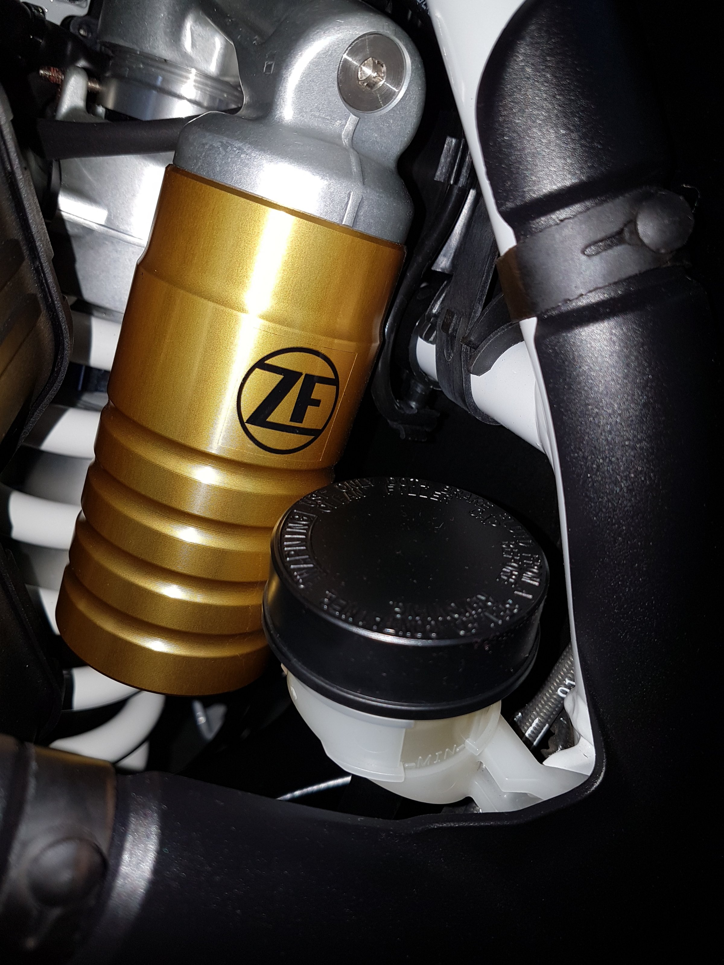Ich habe gestern beim putzen festgestellt das der Boden (silberfarben) dieses zylindrigen goldfarbenen Vorratsbehälter am ESA Federbein hinten zur Hälfte mit einer dichten "schwarzen" Schmutzschicht beaufschlagt war.