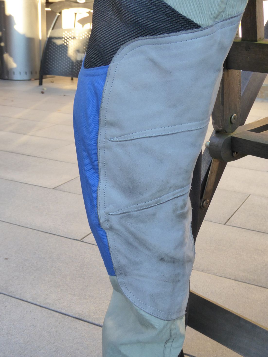 Der Anzug ist mit dem vollständigen Protektorenpaket ausgerüstet.