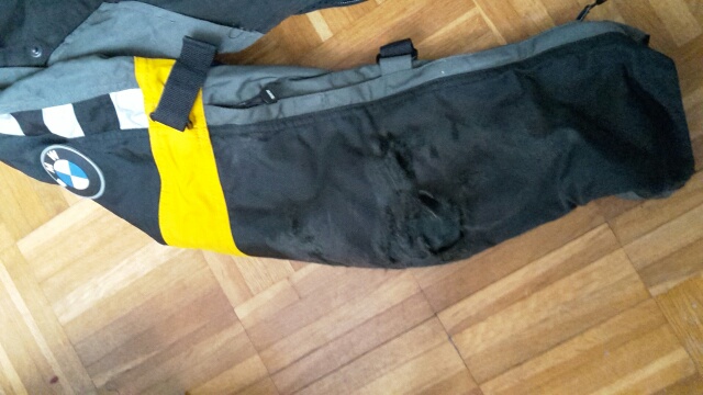 Hey, vor ein paar Wochen hatte ich leider einen Rutscher auf dem Asphalt - dabei wurde mein schöner Anzug lediert und hat nun auf der rechten Hosenseite ein Loch und am rechten Ärmel sowie an der Vordertasche Blessuren (siehe Bilder).