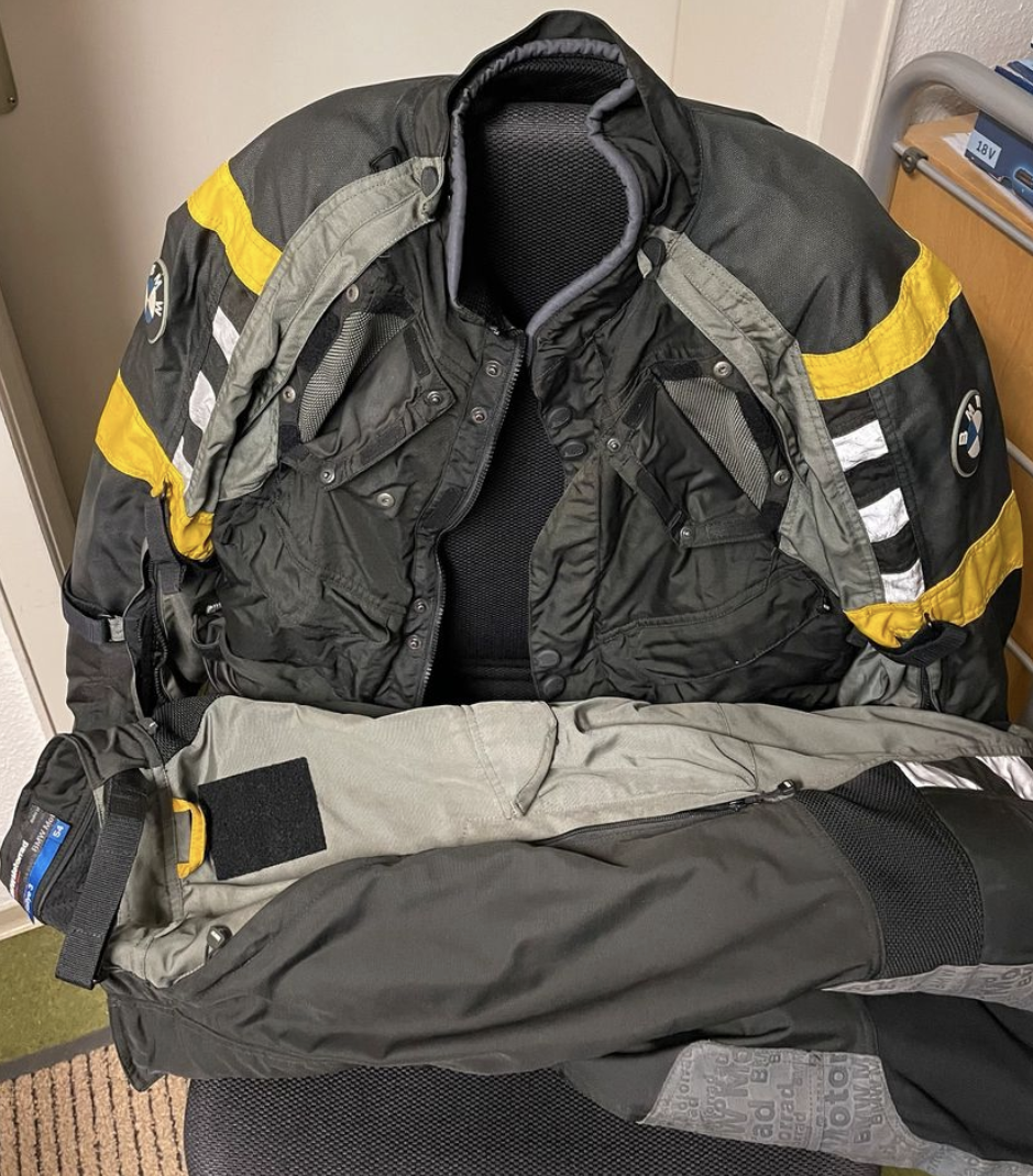Die Jacke verfügt über Schulter-, Ellbogen- und Rückenprotektor, die Hose über Knie und Hüftprotektoren.