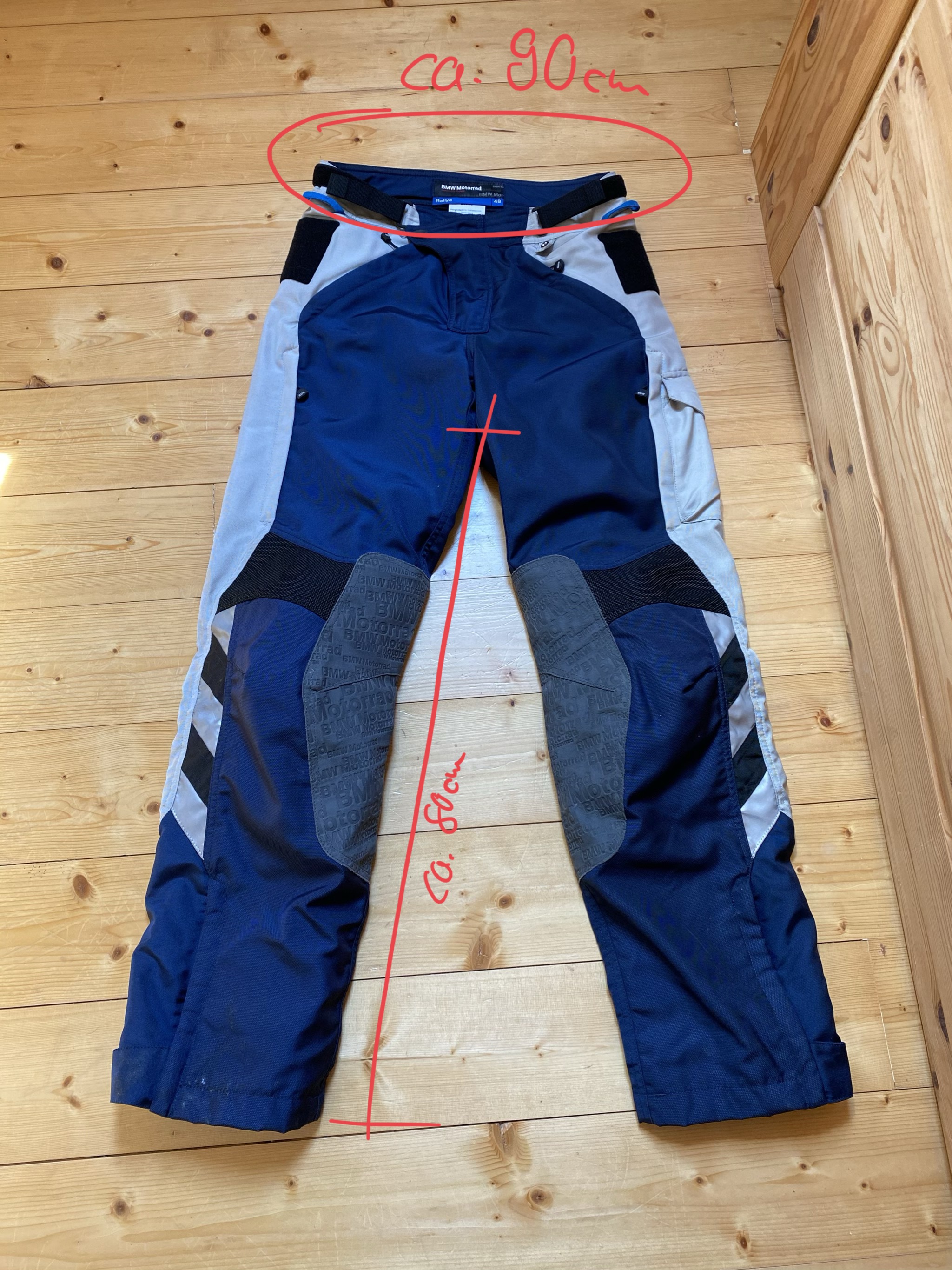 BMW Rallye Hose in Blau grau Größe 48 an.