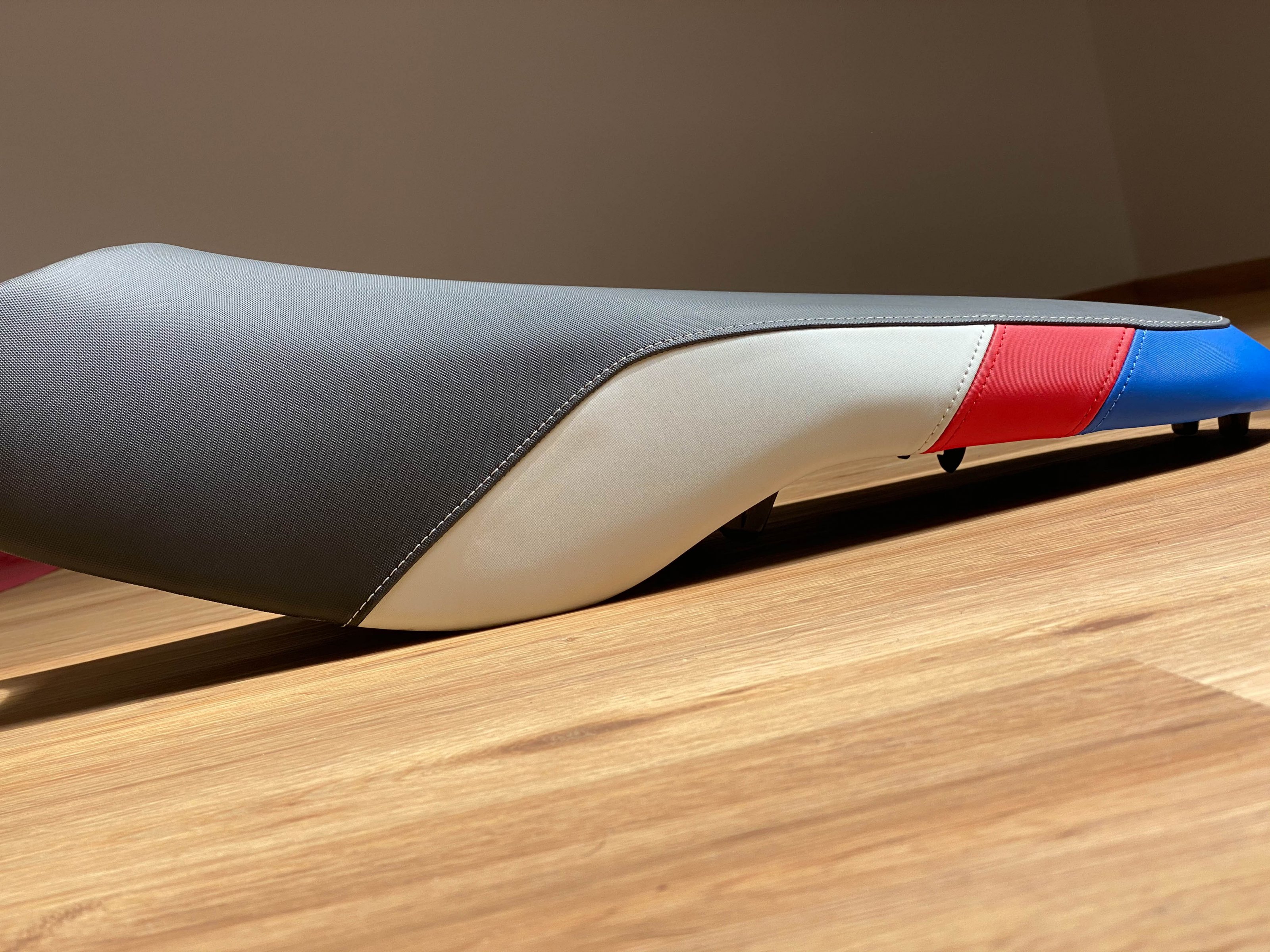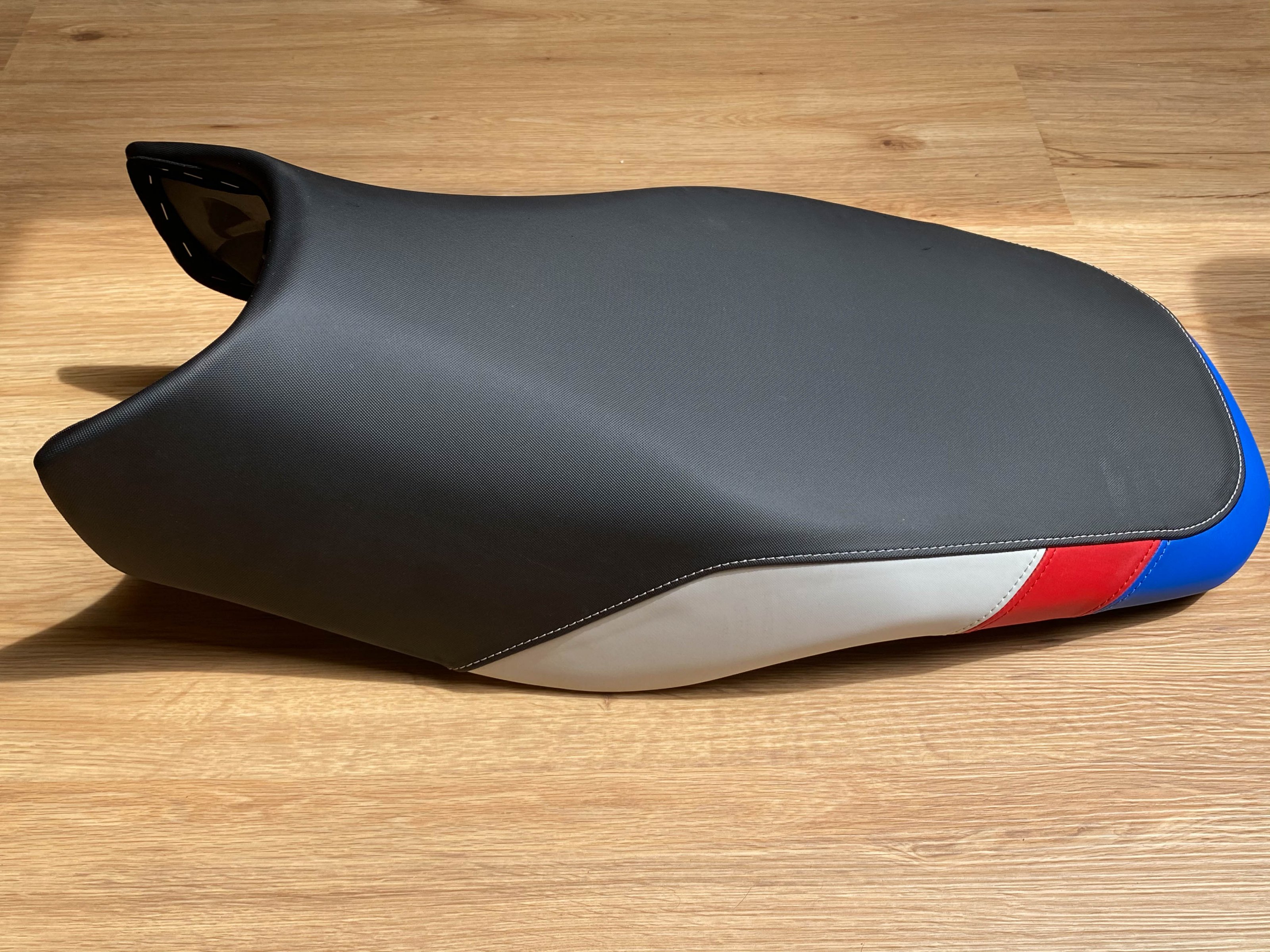 BMW Rallye Sitzbank hoch HP / Rallye design schwarz / weis blau rot ...: Hallo suche eine neuwertige Rallye Sitzbank hohe Ausführung im HP Design ( Sitzfläche schwarz / Rand weis blau rot ) ohne gepäckplatte ( wenn...