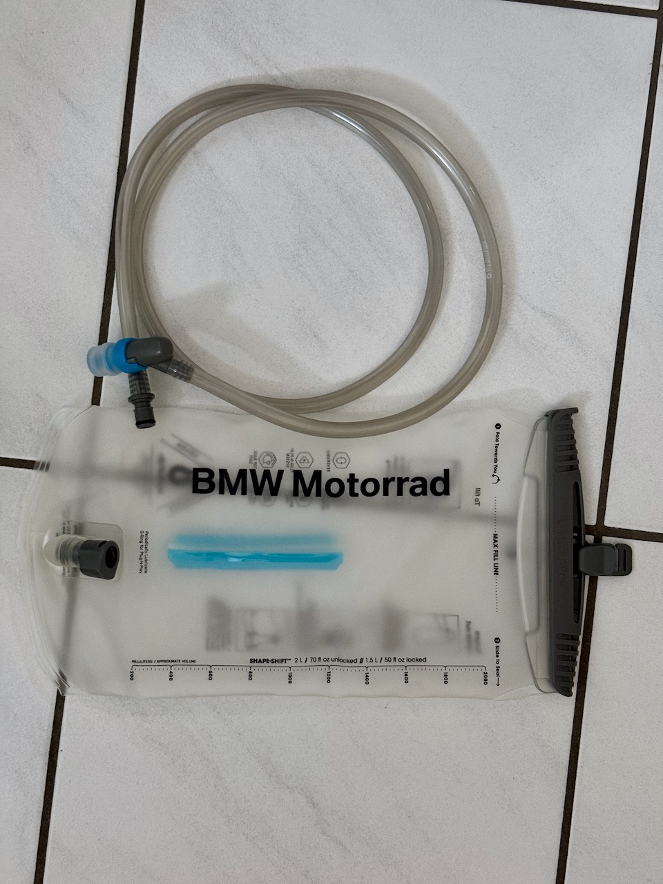 Dabei ist neben allen Protektoren (Ellenbogen, Schulter und Rücken) auch der original BMW Trinkbehälter, der am Rücken befestigt werden kann. Dieser ist neu uns unbenutzt.