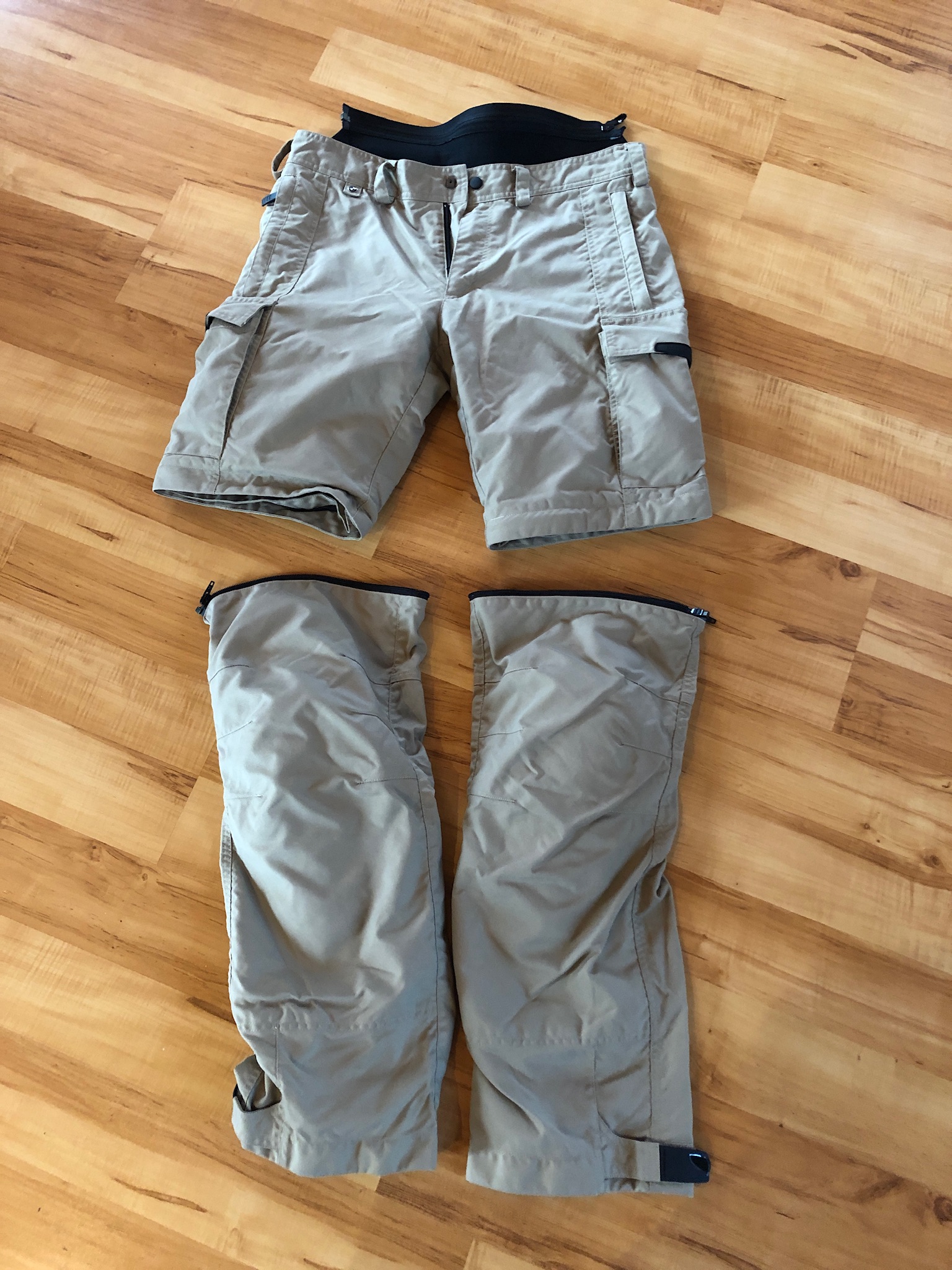 Hosenbeine in Kniehöhe durch Reißverschluß abtrennbar.
