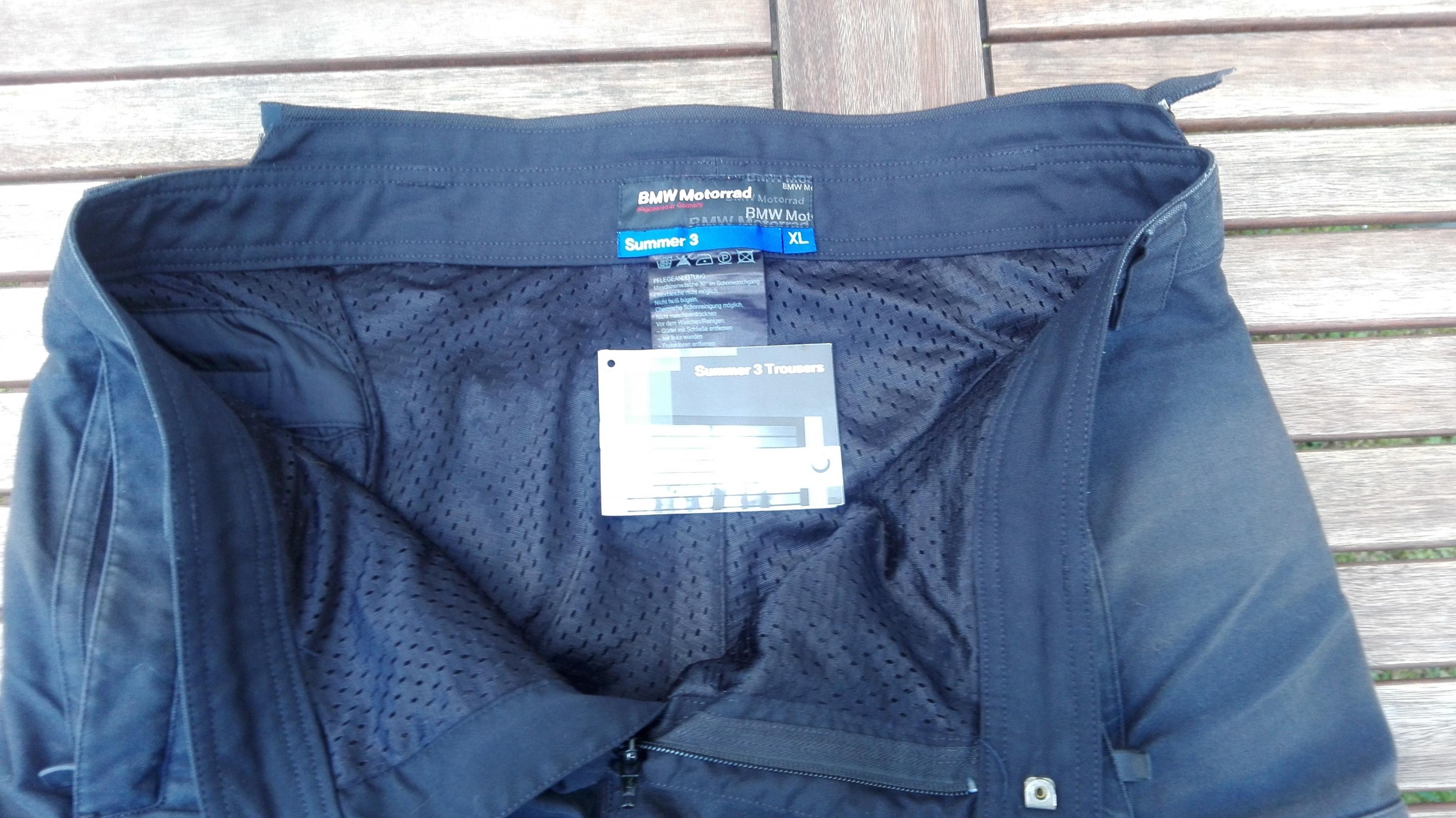 Die Hose ist, normal geschnitten, auch ein kleiner Bauch passt gut rein. Bin 1,87m groß, bei 95 kg. Als ich noch 90 kg hatte, passte sie perfekt. Zur Orientierung: bei Jeans trage ich 36 im Bund und 34 in der Länge. Die BMW-Hose ist einen Tick länger, aber das macht nichts, denn die meiste Zeit sitzt man ja auf dem Moped, da rutschen die Hosenbeine bei jeder Hose hoch.