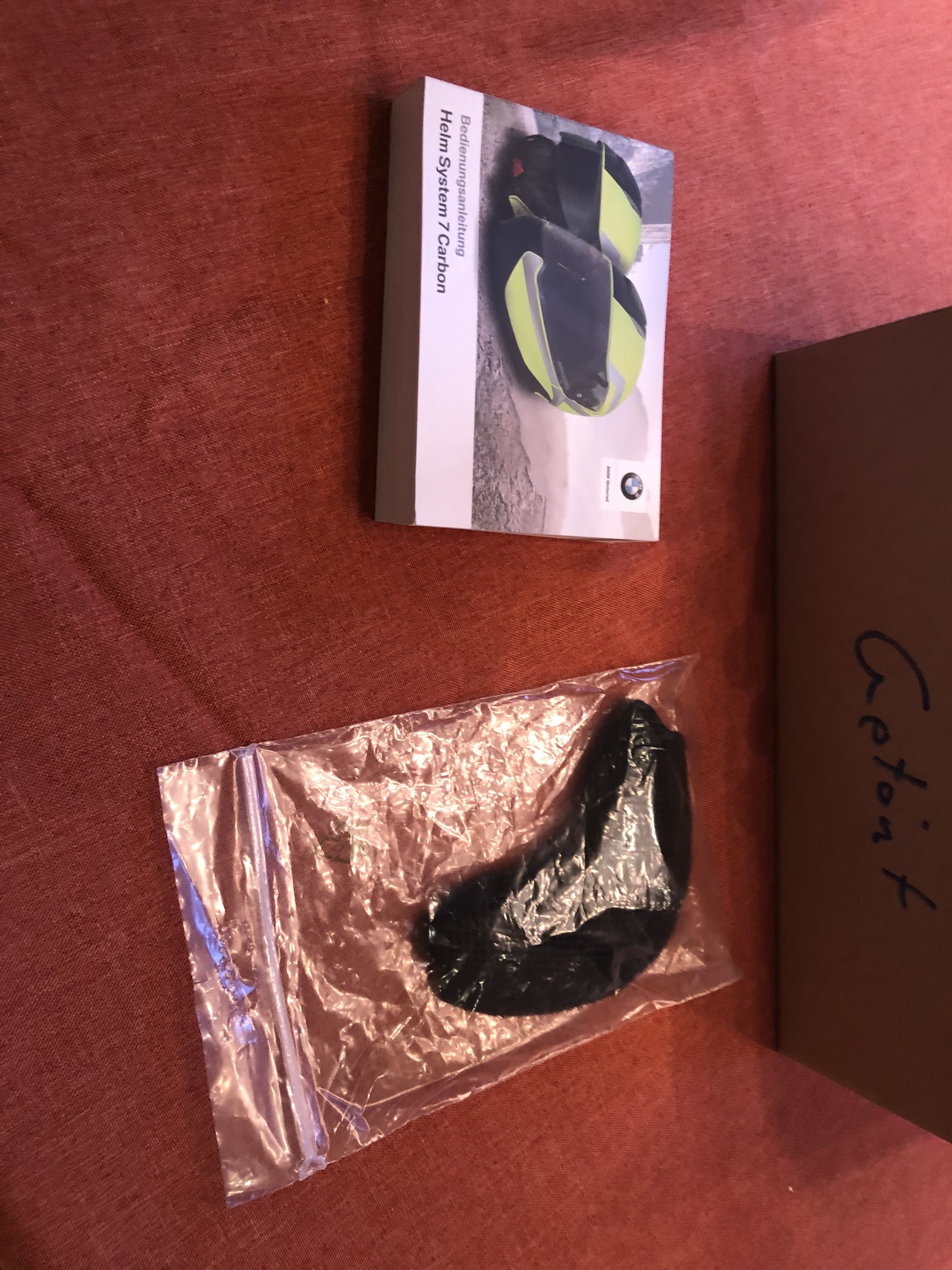 Inklusive Original Verpackung , zusätzlichem Kinnpolster , Helmsack und Bedienungsanleitung .