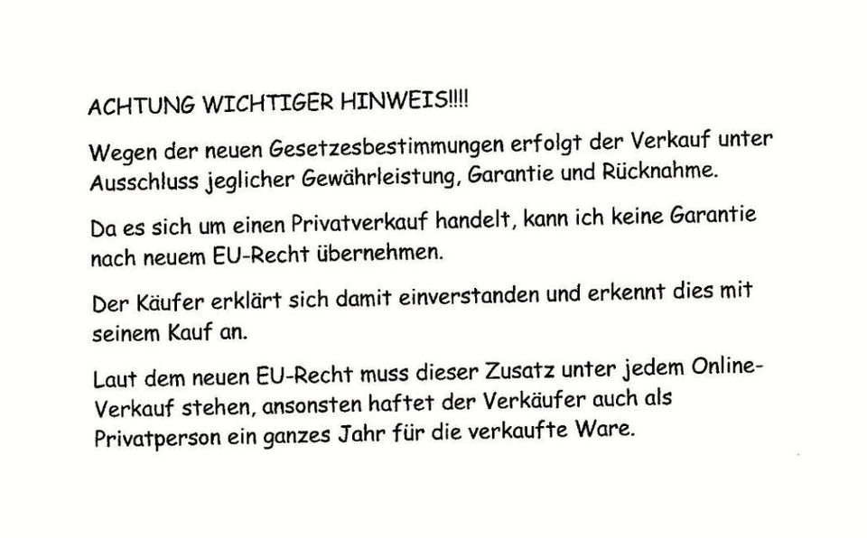 Bitte beachten Sie, dass es sich um einen Privatverkauf handelt, daher keine Garantie oder Gewährleistung.