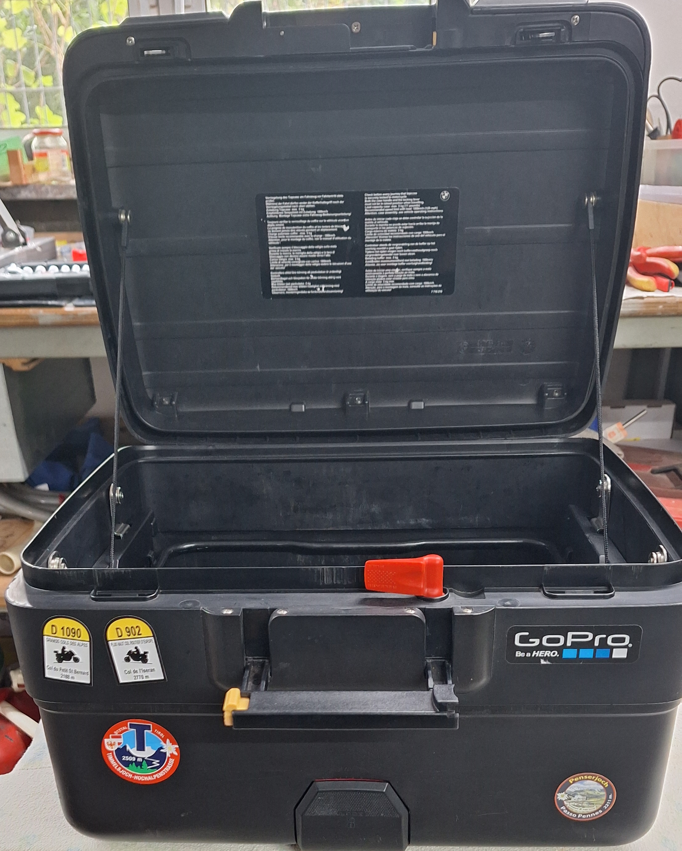 Verkaufe ein BMW- Vario- Topcase für R1200GS / K25 inkl. Montagematerial, Gepäckträgerplatte, Rückenpolster und Schlüsselplättchen zum Kodieren,