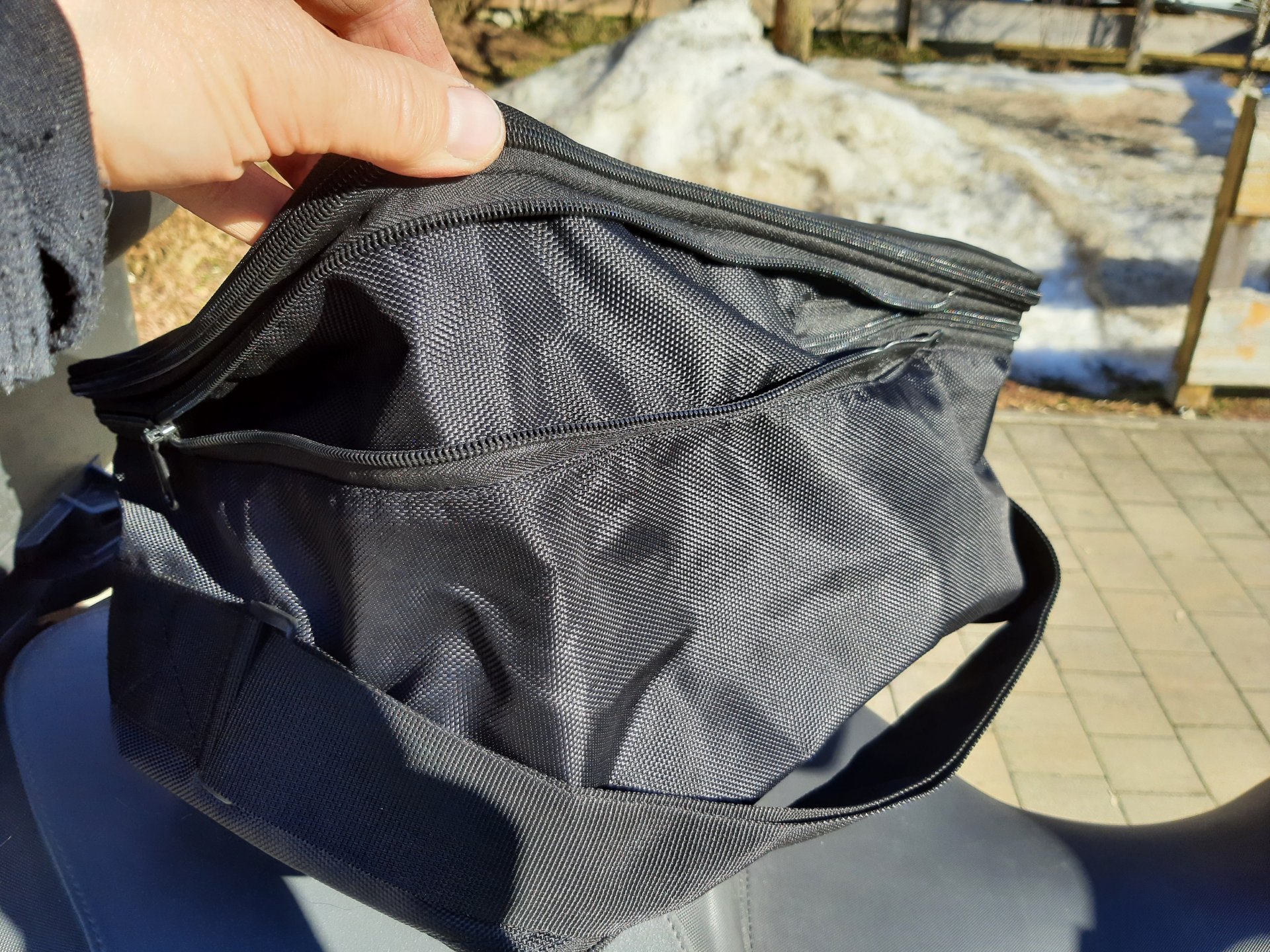 Angebaut ist ein passendes Rückenpolster (ca. €80,-) und eine Wunderlich-Reling (ca.€160,-), dazu gibts die neuwertige passende, auch verstellbare Innentasche (ca. €80,-)