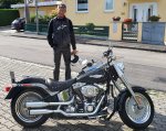 Aber auf dem Bild sieht man gut wie riesig der Motor im Rahmen hängt. Kleiner Tank obendrauf und zwei Räder vorn und hinten. Da schaut meine Fat Boy stimmiger aus, aber is natürlich Geschmackssache.