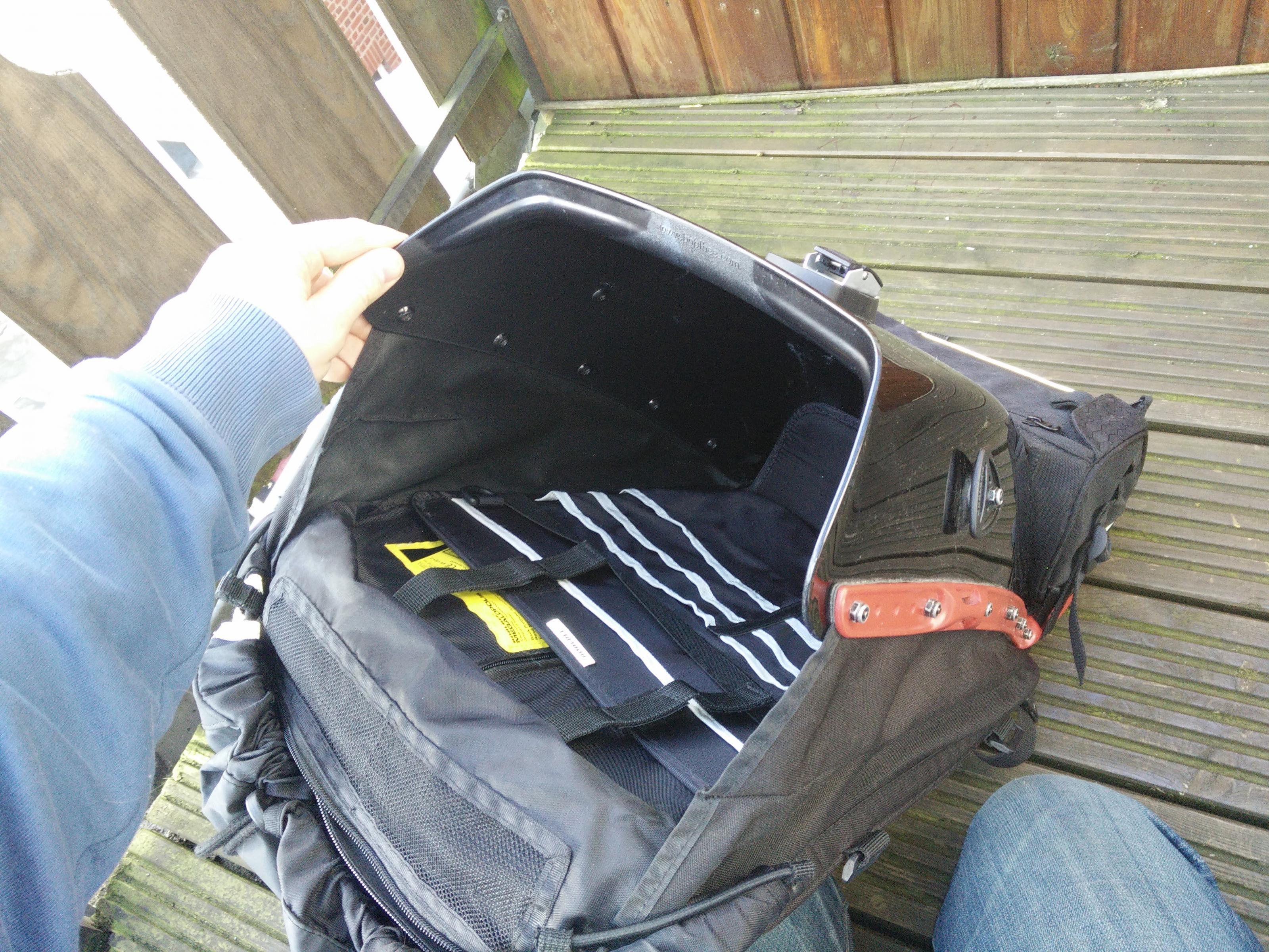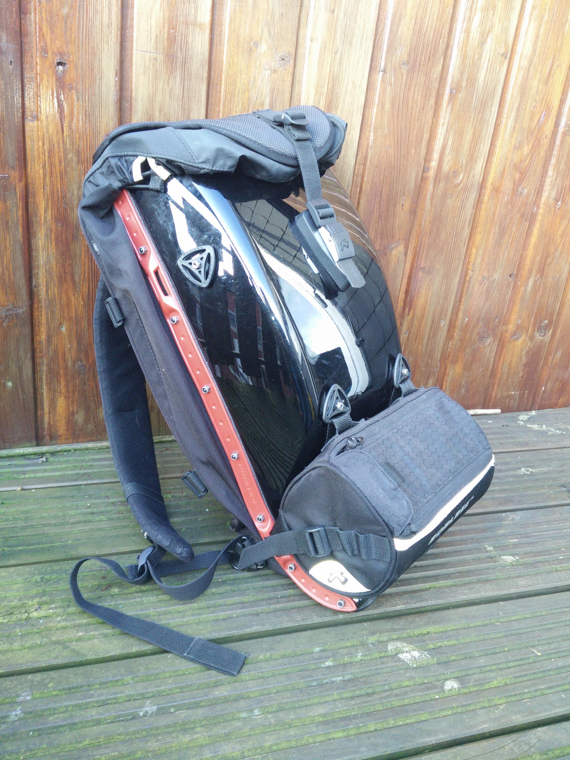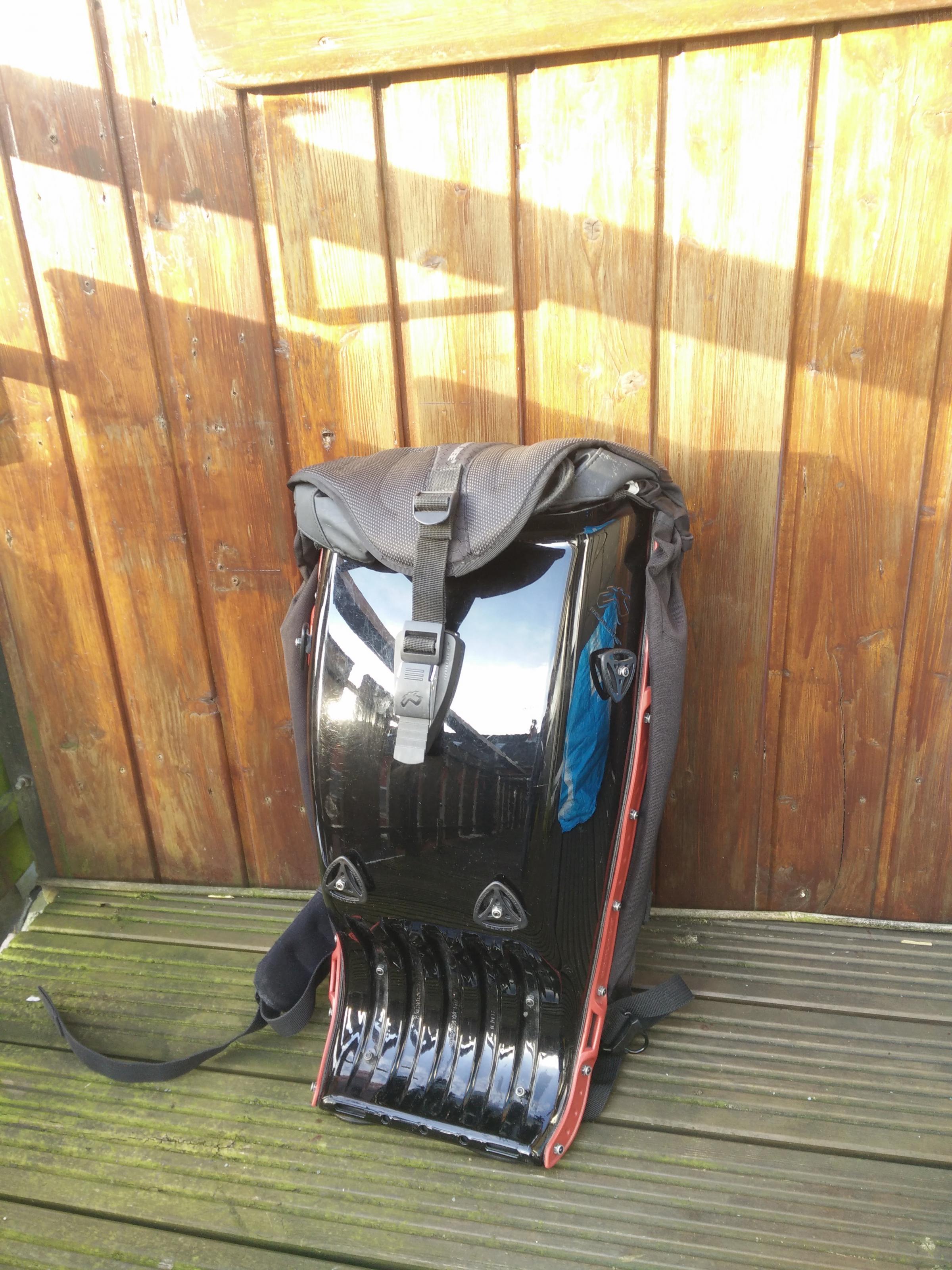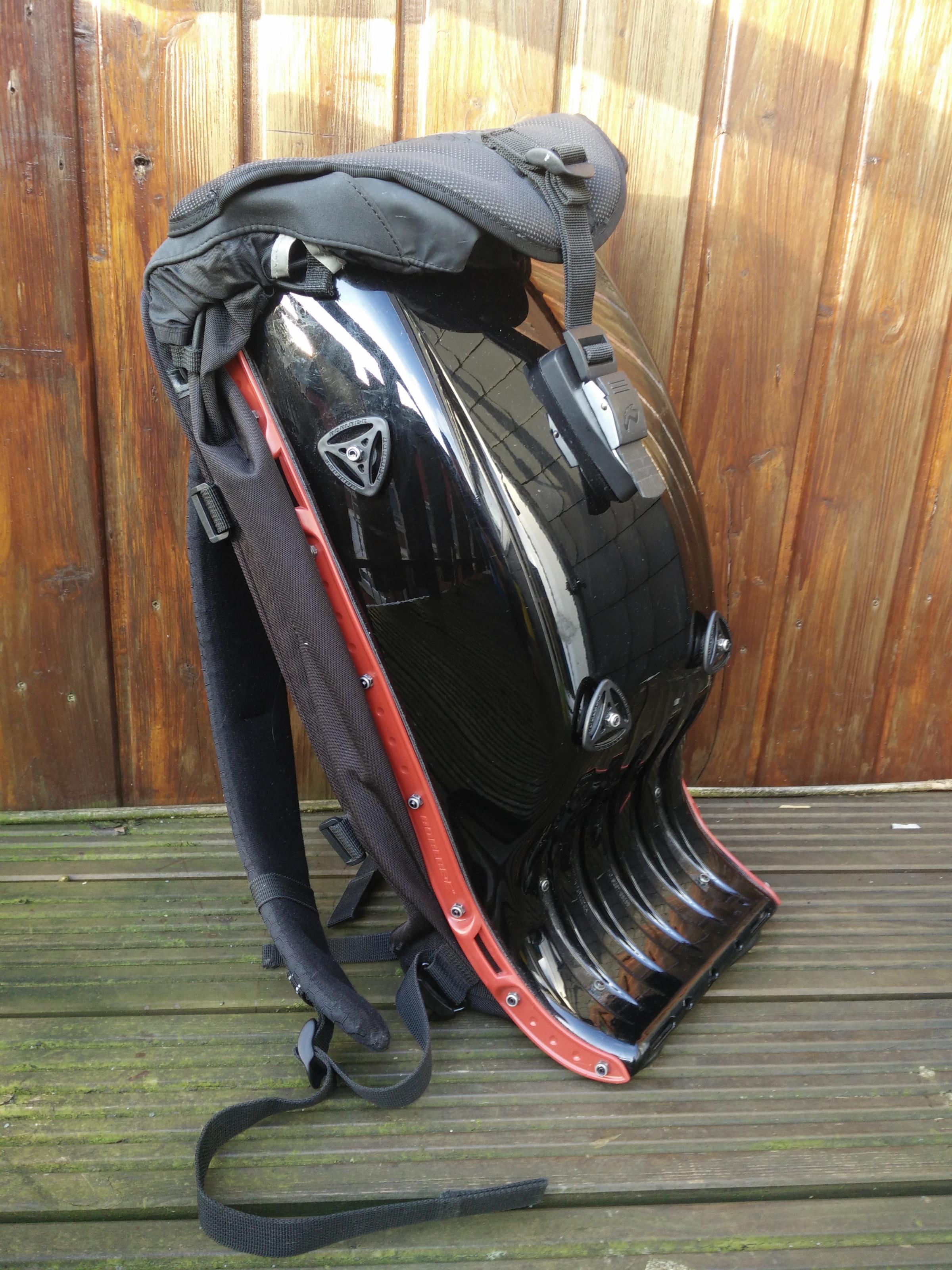 Der Rucksack ist ein Hartschalen Rucksack der sogar vom TÜV als Rückenprotektor zugelassen ist.