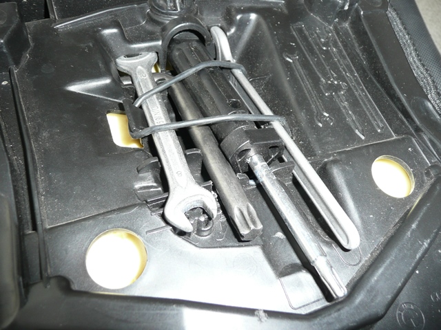 Das stimmt Zörnie, aber die braucht man bei der LC eigentlich auch nicht. Das Werkzeug ist sauber und übersichtlich in speziellen Aussparungen unter dem Sozius-Sitz untergebracht und somit jederzeit ohne große Sucherei griffbereit.