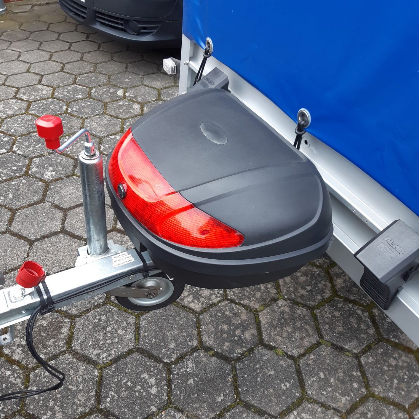 Diskutiere Box auf Autoanhängerdeichsel im Zubehör Forum im Bereich Modellunabhängige Foren; Fertig, habe mir bei Kleinanzeigen ein gebrauchtes Topcase mit Adapterplatte ( 25€ ) gekauft.