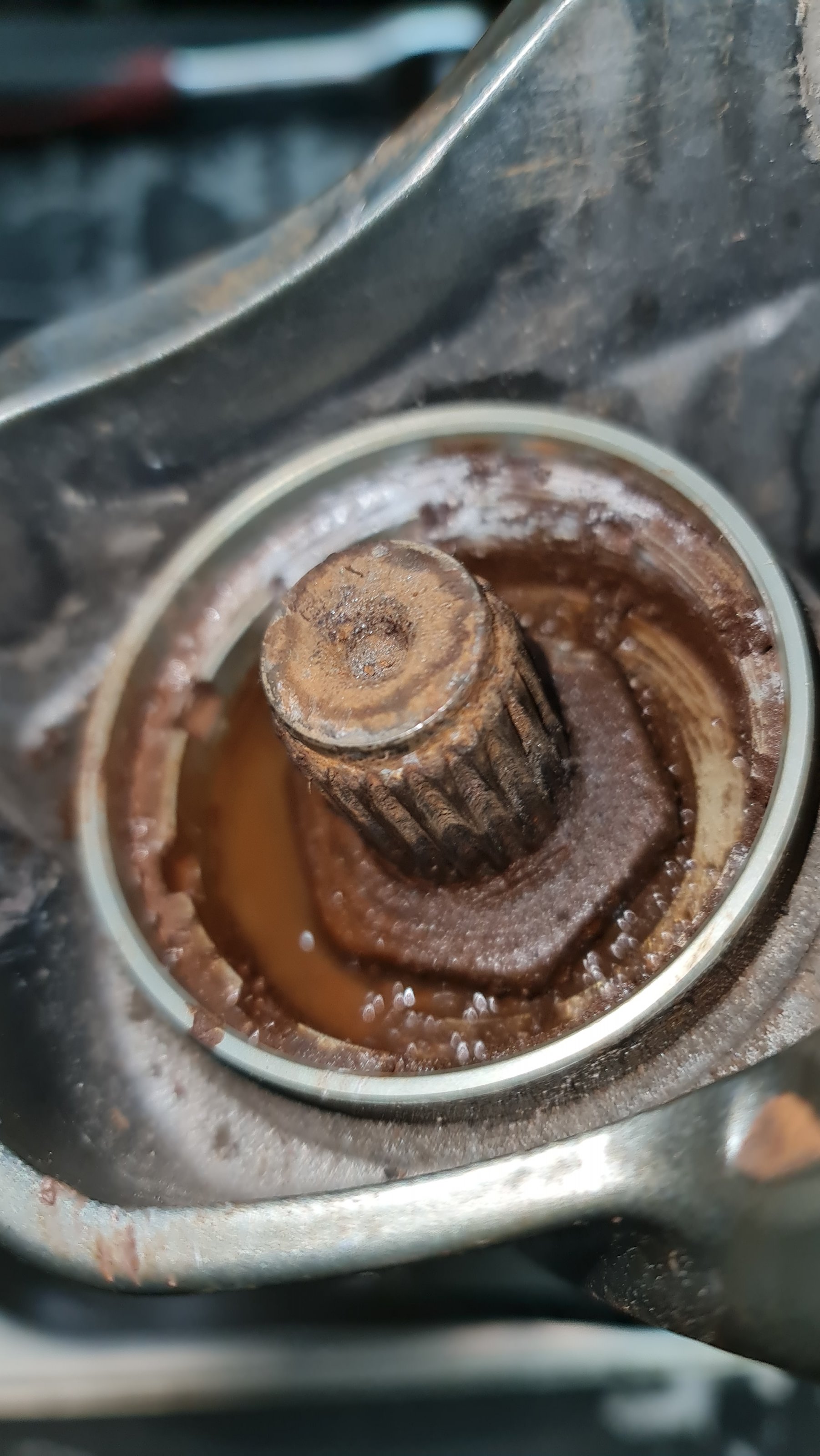 Zum Glück konnte der Schrauber die GS kurzfristig mit einem Transporter in die Werkstatt holen, da dann den Endantrieb geöffnet und das hier gesehen: