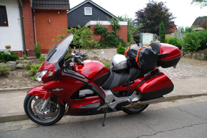 Das heißt: an meiner Honda waren beide Koffer, das Topcase und eine Gepäckrolle von Louis randvoll.