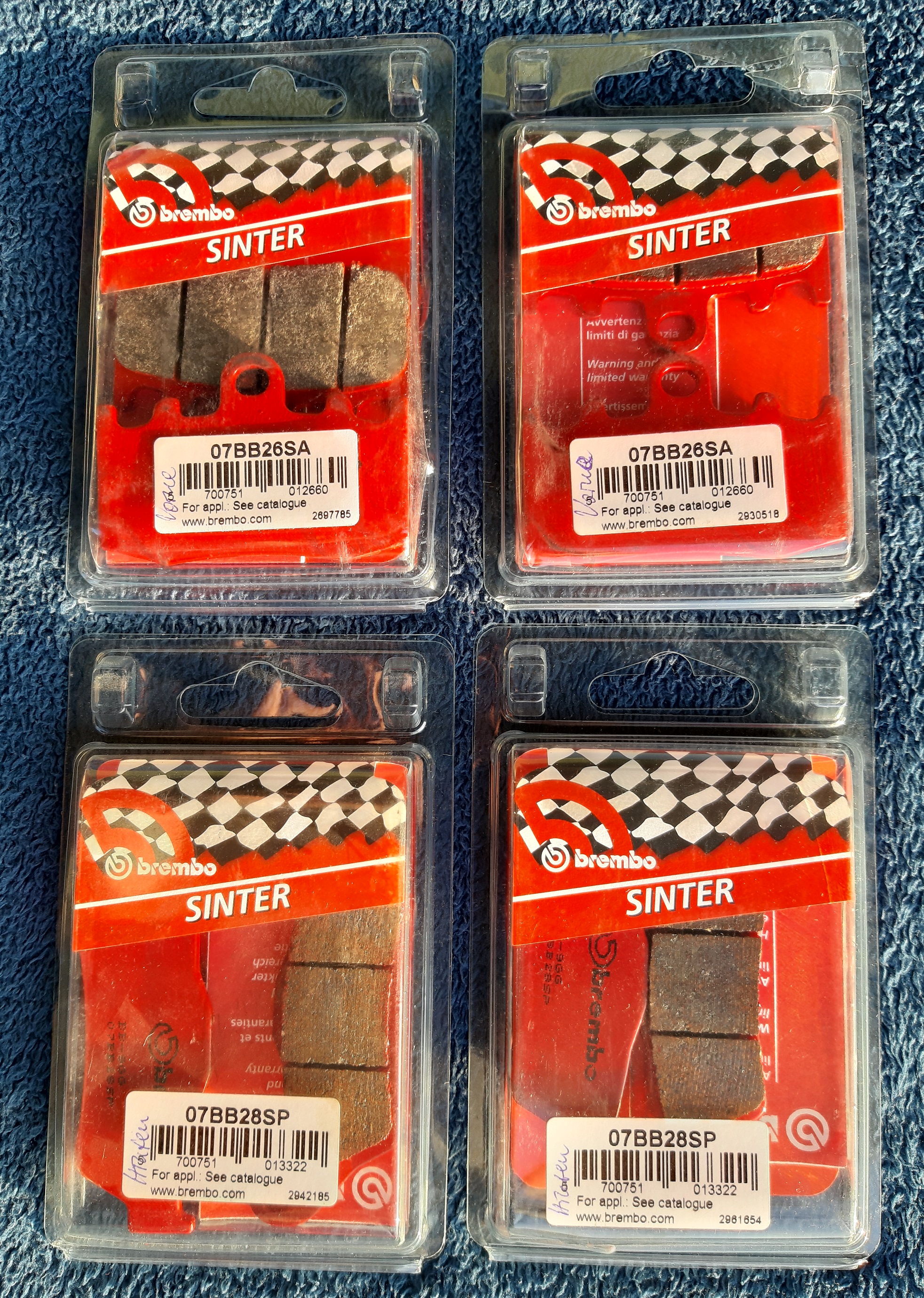 wegen Fahrzeugwechsels verkaufe ich je zwei Paar Brembo Sinter-Bremsbeläge für die K25 ab Bj. 2004: