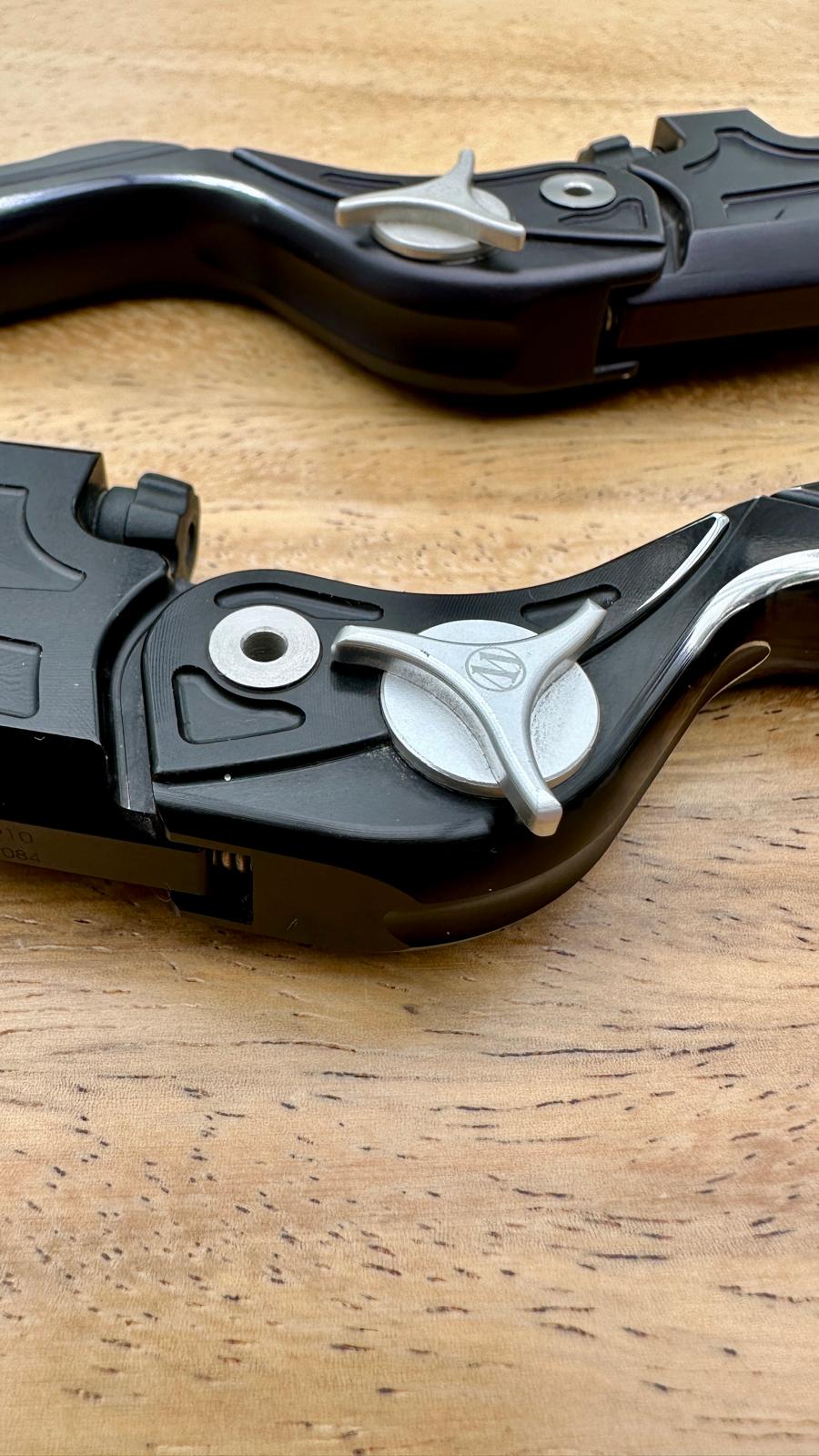 Die Hebel waren bis vor kurzem bei mir im Einstaz und funktionieren tip-top. Gerade wenn man die Handschuhe unterwegs wechselt, dicker/dünner, kann man die Hebel schnell über das große Handrad verändern. Die Hebel sind ohne Schäden und haben lediglich übliche Gebrauchsspuren, Farbe an den Griffstellen ist leicht abgenutzt; siehe Bilder.