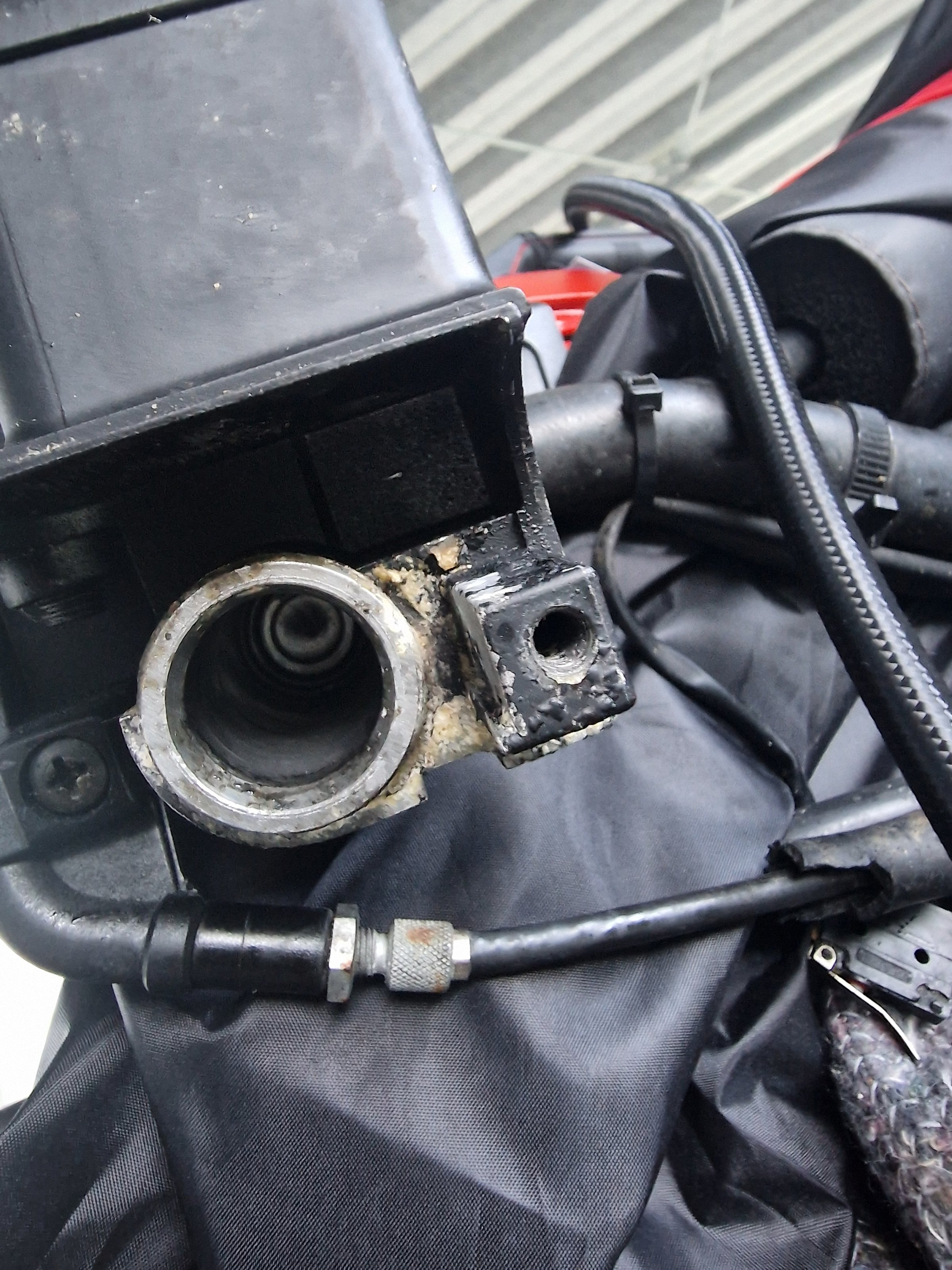 Zur Info: Bremsleitung sind entfernt da die linke beim entlüften geplatzt ist. R1100gs 1997.