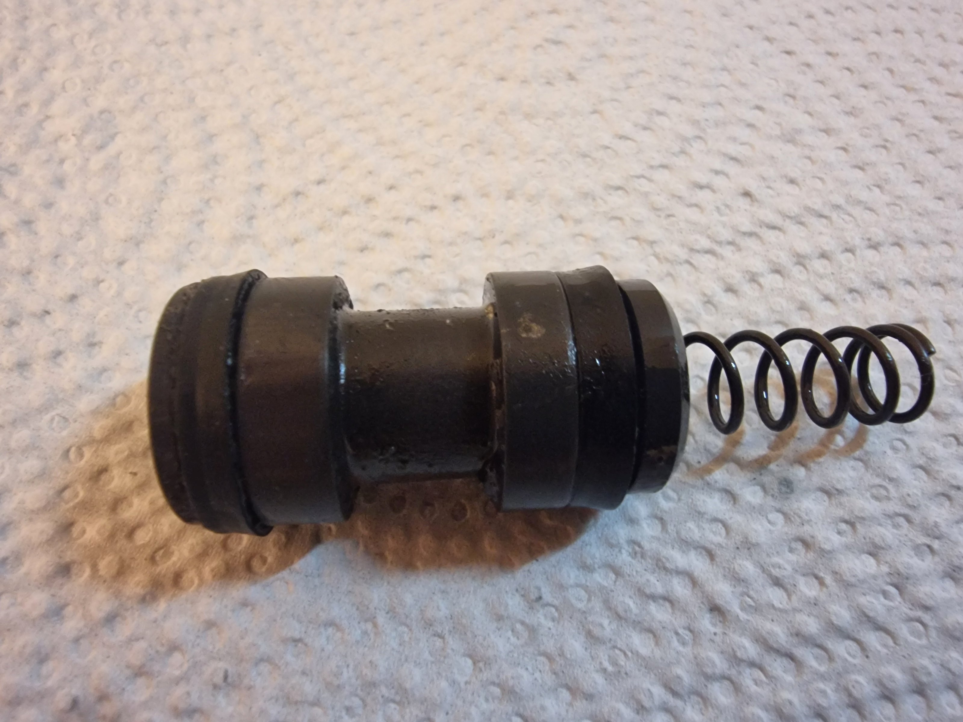 So er ist raus. Ich habe heute Vormittag ein wenig wd40 aufgelegt, und dann den Hinweis über das Loch der Sicherungsschraube zu pusten probiert, mit Finger die Hohlschraubenfassung abgedichtet und dann immer wieder rein und ein Stückchen mehr heraus. Den letzten Schritt mit einer Sprengringzange und dann kam der Einsatz langsam raus. Was ich dann sah war ernüchternd.... Aber mal sehen, eine Chance bekommt dieser Hauptbremszylinder.