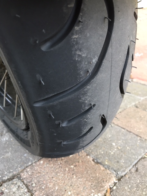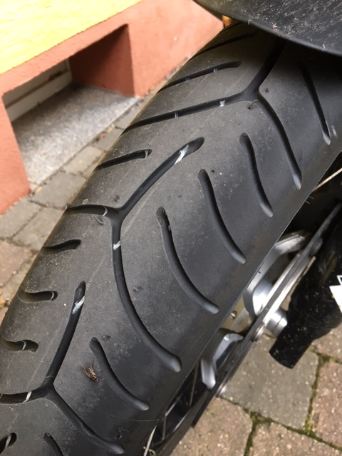 Nach so ziemlich genau 1100 KM stellte ich bei der obligatorischen Luftdruckkontrolle einen Druckverlust von 0,5 bar vorne fest.