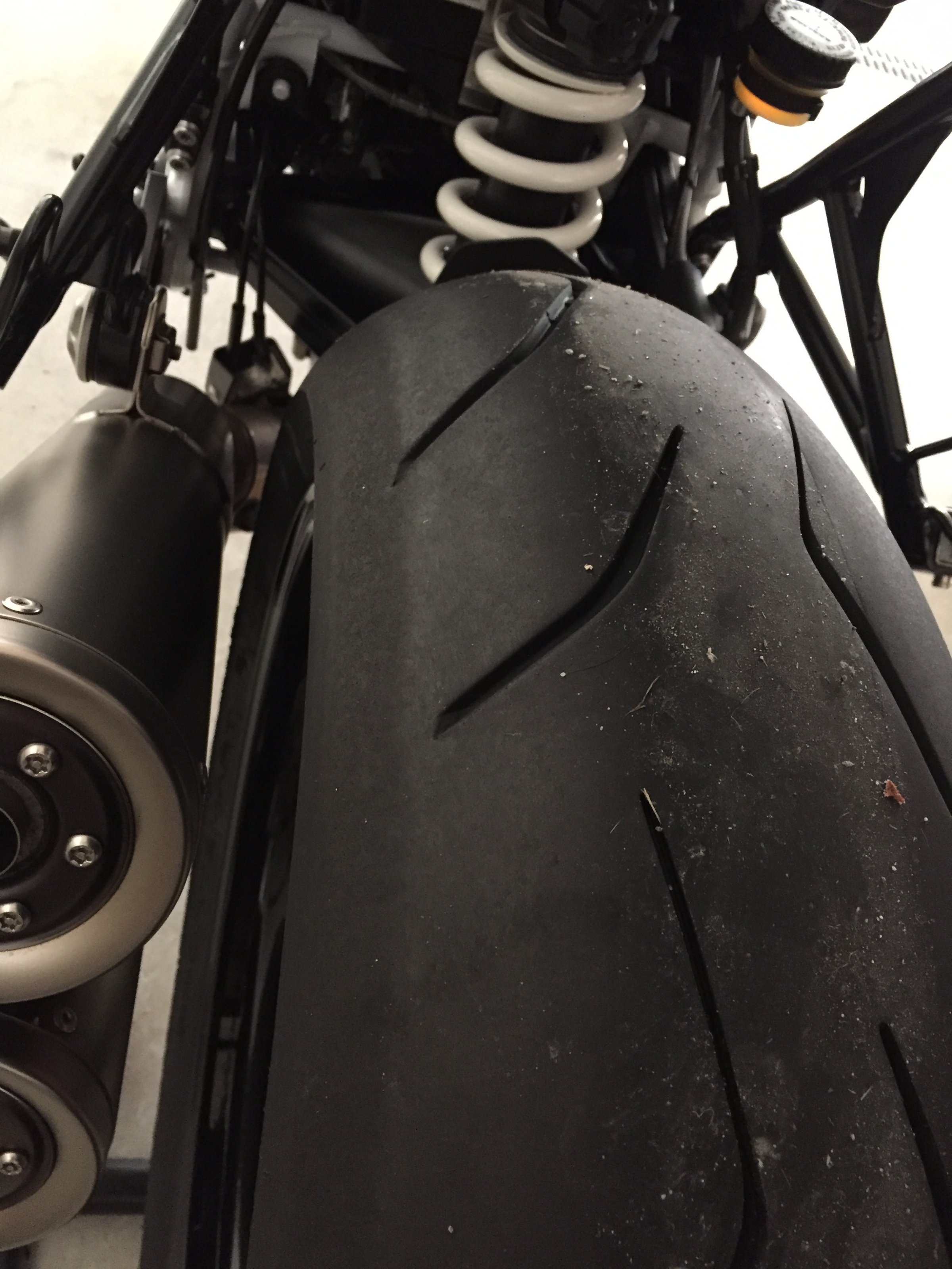 Reifen wie ein Michelin Power Cup 2 (die nur in einem relativ schmalen Bereich im Zenit profiliert sind) hätten sicher keine Straßenzulassung, wenn der Außenbereich bei Nässe überhaupt genutzt werden könnte.