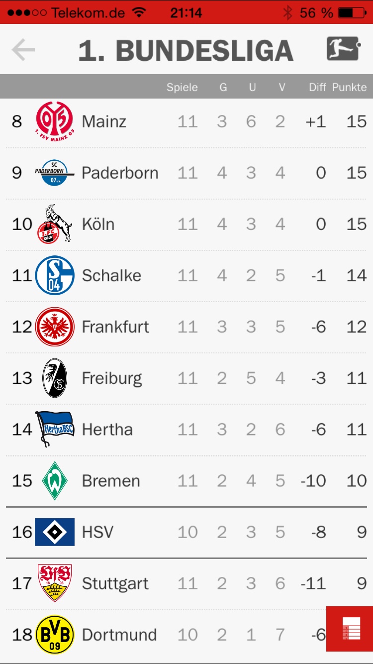 Mensch, was stellen die in der Liga an, das gibts doch gar nicht. Ich drücke denen die Daumen (obwohl ich kein BVB-Fan bin), dass die sich wieder nach oben arbeiten und da mitspielen wo sie hingehören, nämlich nächstes Jahr wieder in der Championsliga.