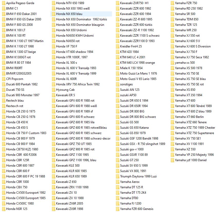 - XJR 1300; Tenere700; Ducati Desert Sled; Triumph Scrambler XE