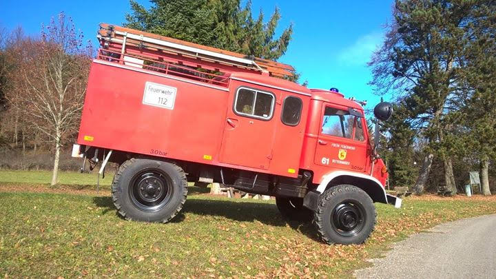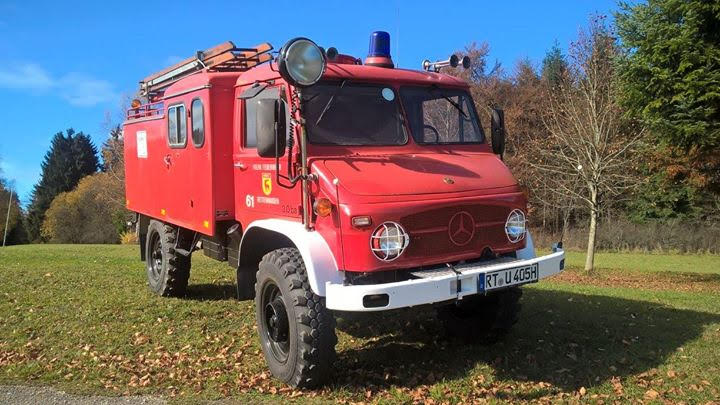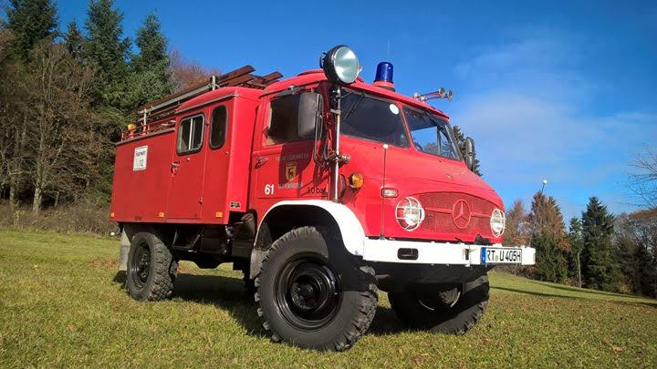 Den schönen Unimog 404 habe ich aus ganz schlechter Haltung gerettet und wieder zum Leben erweckt. Auf dem Dach sind aus dem Moos schon kleine Bäume gewachsen. Es war ein sog. Vorauslöschfahrzeug ursprünglich noch mit Winde vorne dran. Eher selten denn er hatte die große Mannschaftskabine und nicht den Einzelsitz wie die Waldbrandlöschfahrzeuge (TLF). 6 Zylinder Benzinmotor. 20 bis 25 l Verbrauch dafür wenig Leistung…