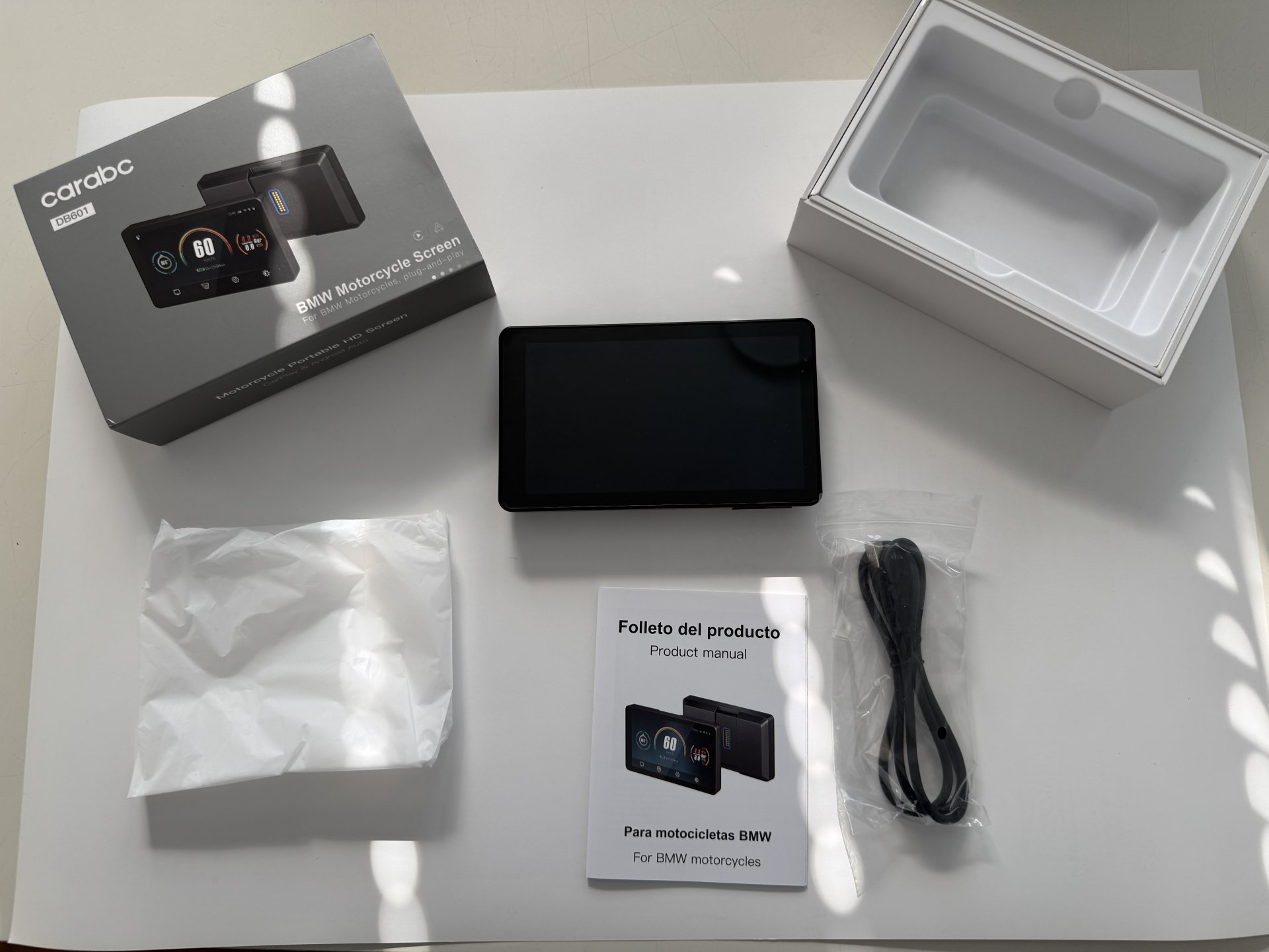 da ich meine 1250 GSA leider aus gesundheitlichen Gründen verkaufen musste, biete ich hier ein unbenutztes Apple CarPlay Device aus 2025 an. Das Ding war noch nie am Motorrad befestigt und hat bis auf die Photos von meinem Schreibtisch noch keine Ausflüge gemacht. Das Gerät funktioniert 1a und hat keine Beschädigung etc. Es ist mit dem Helligkeitssensor ausgestattet. Unterhalb des Sensors ist am Rand ein kleines Luftbläschen zu sehen, welches von Anfang an da war. Habe dem keine Beachtung geschenkt, weil es nicht im Bereich des Displays liegt.