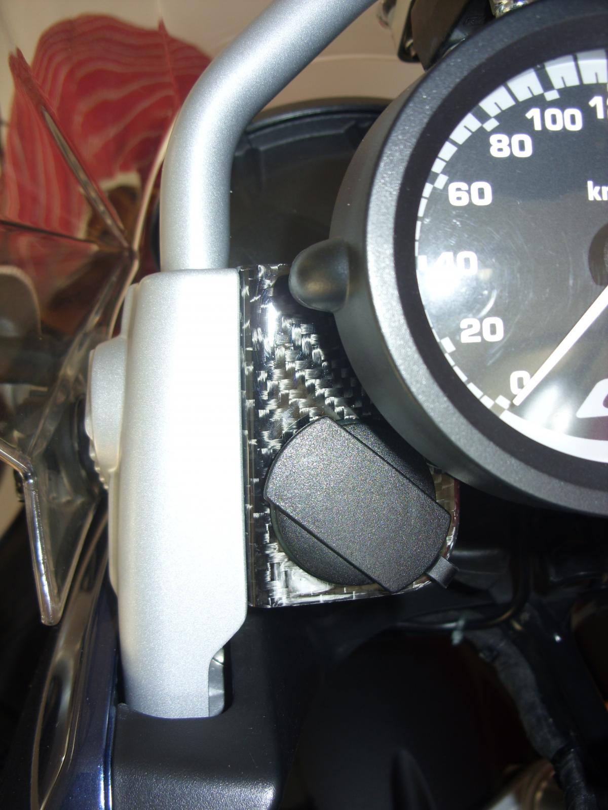 Biete hier einen Steckdosenhalter für eine R 1200 GS aus echtem Carbon an. Der Halter wird an den beiden vorhandenen