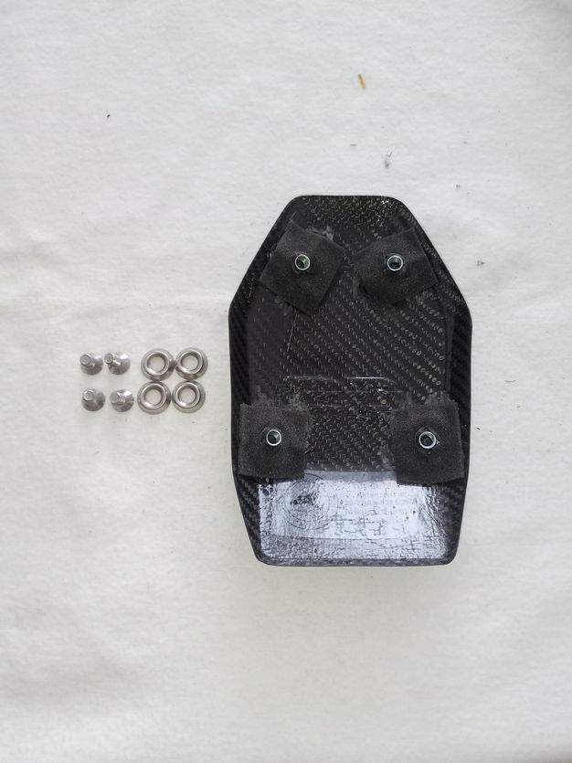 Das neue Pad wird mittels Schrauben und (U-)Scheiben an den Original Punkten verbaut/geklemmt